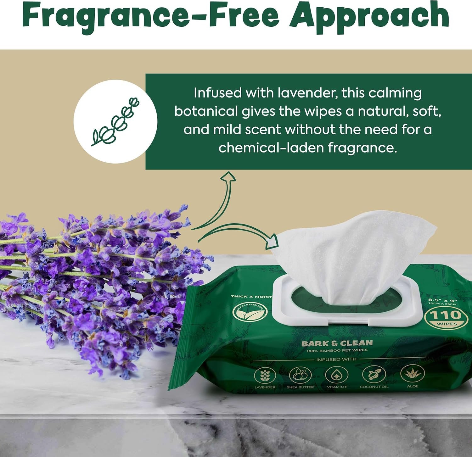 These lavender dog wipes are infused with soothing and moisturizing ingredients like lavender, shea butter, vitamin E, coconut oil, and aloe making them perfect for dogs with sensitive skin.