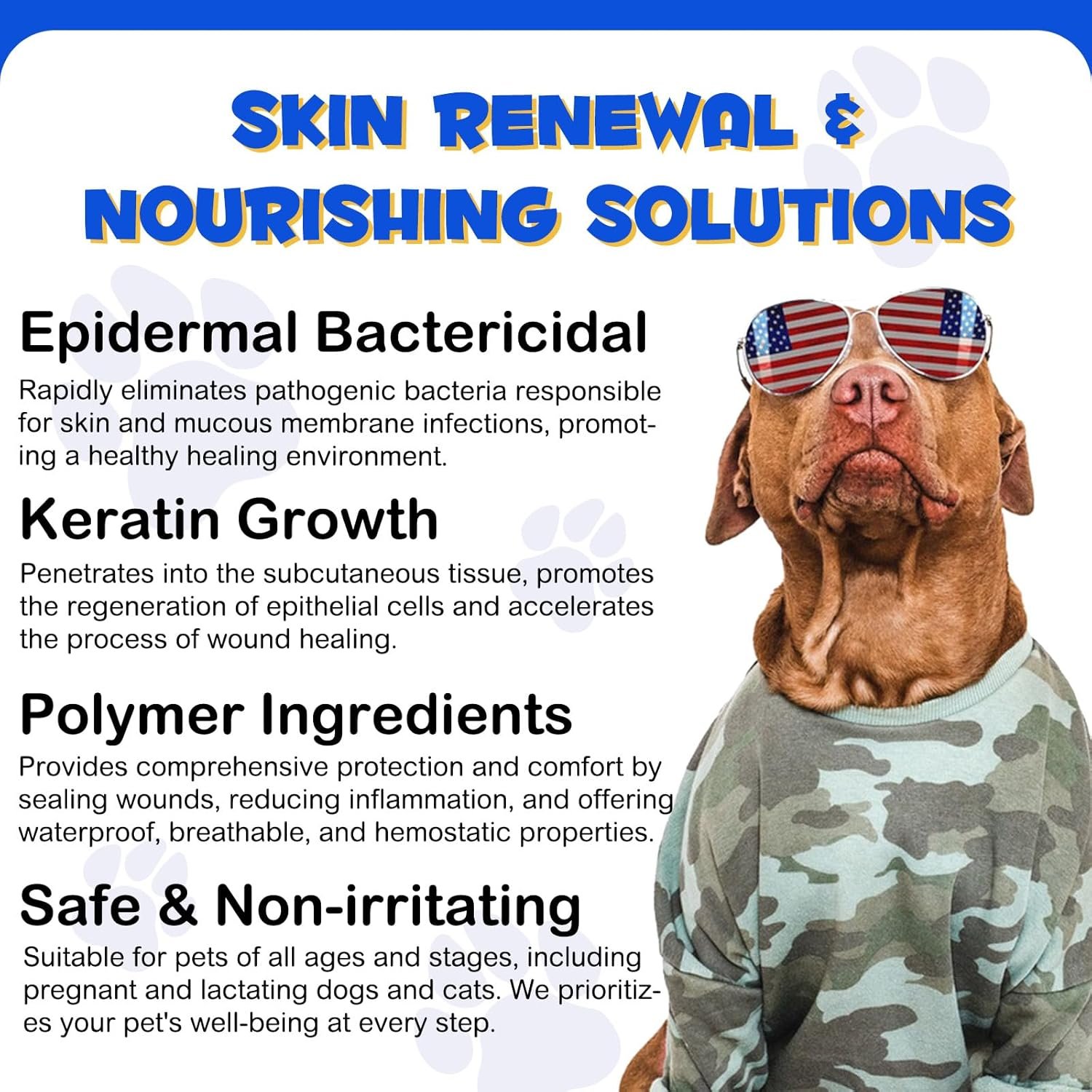 🐕The dog wound healing spray wound care solution, mild formula, does not irritate pet skin and reduces pet pain.