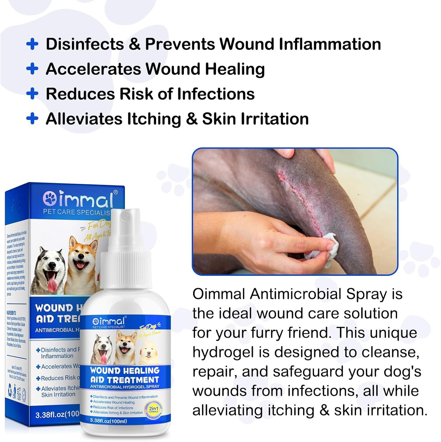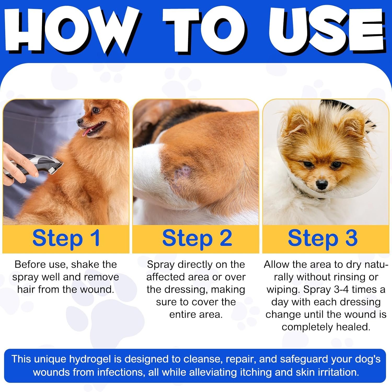 Dog Wound Care Spray, Dog Wound Heal, Hot Spot Wound Healing Spray for Pets, Healing Aid and Skin Repair, Clean Wounds, Dog Skin Allergies Safe Pet Supplies, 3.38 fl.oz