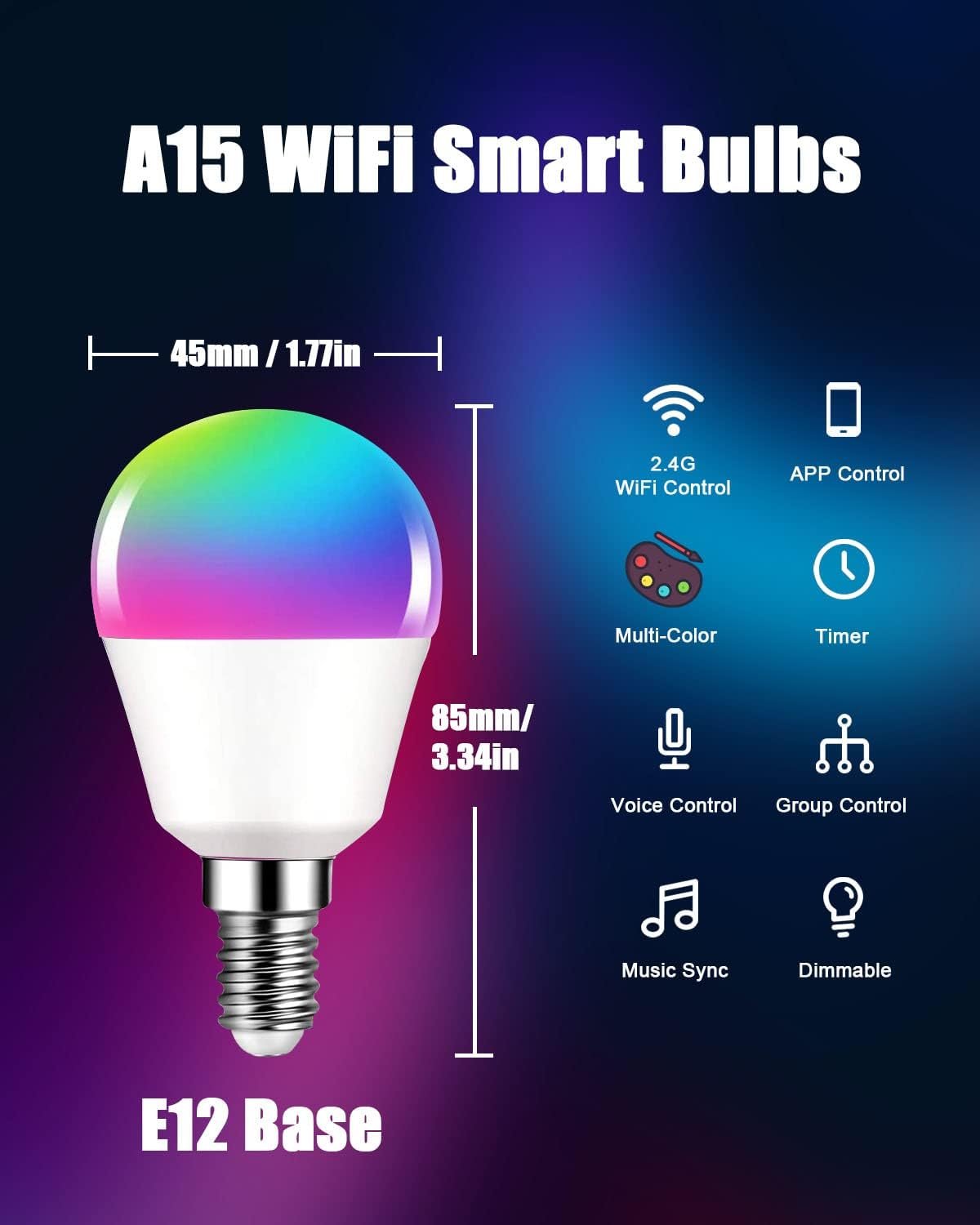 The DOGAIN a15 e12 led bulb is a smart device that can control the light bulb switch/color/plan through the smart phone. It has a 500LM, 6W incandescent lamp equivalent to 40W. It is suitable for ceiling fan lights with candle bases led floor lights for bedroom. In addition, friendly and professional support teams are at your service 24/7; Products are with our worry-free 12-month warranty and lifetime technical support. (Note: Only support WiFi 2.4Ghz and the bulb cannot be used on a dimmer.)