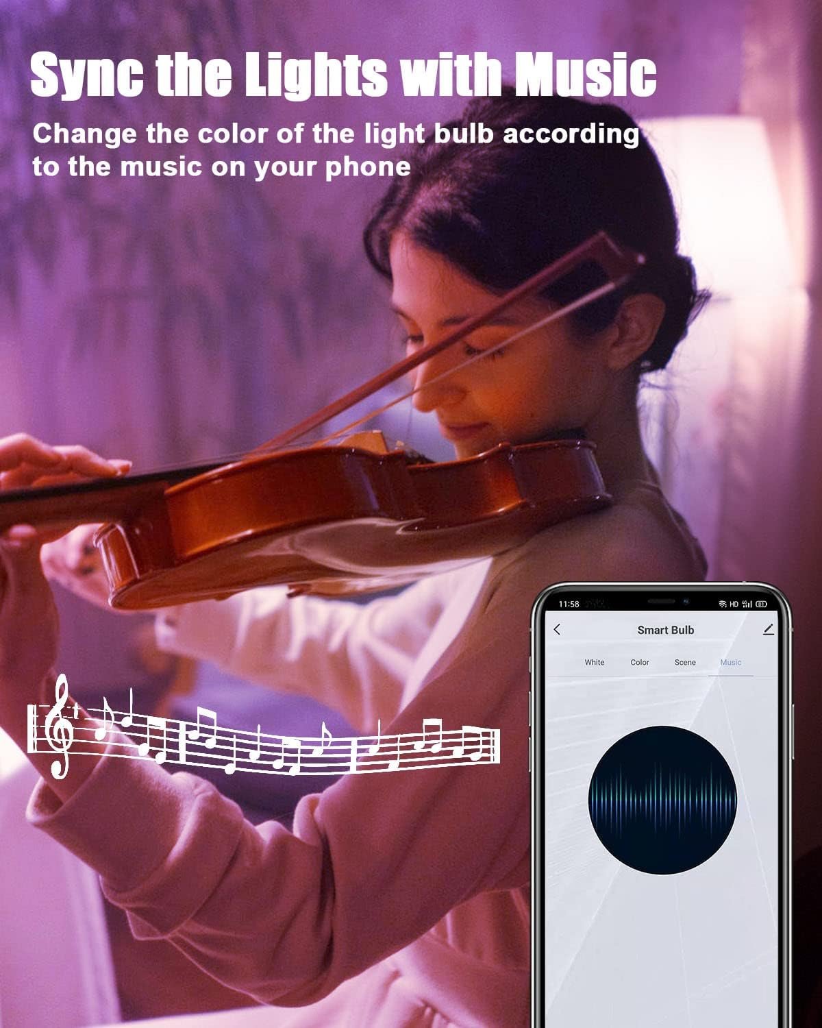 Schedule & Music Mode: Create schedules (timer or countdown) to automatically turn on and off the smart light based on everyday routines or to deceive potential intruders when you are traveling for work. The rgb light bulbs are also a music syn feature where the lights will change color and flash to the beat