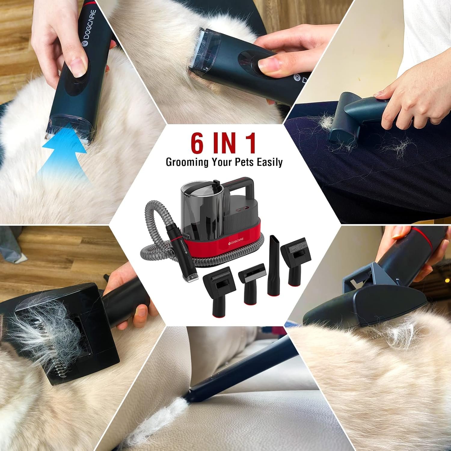 DOGCARE 6-in-1 Dog Grooming Kit with Vacuum Cleaner combines the 6 kinds of functions for your convenience. Professional Grooming, We All Can Do It! The Pet Clippers kit includes