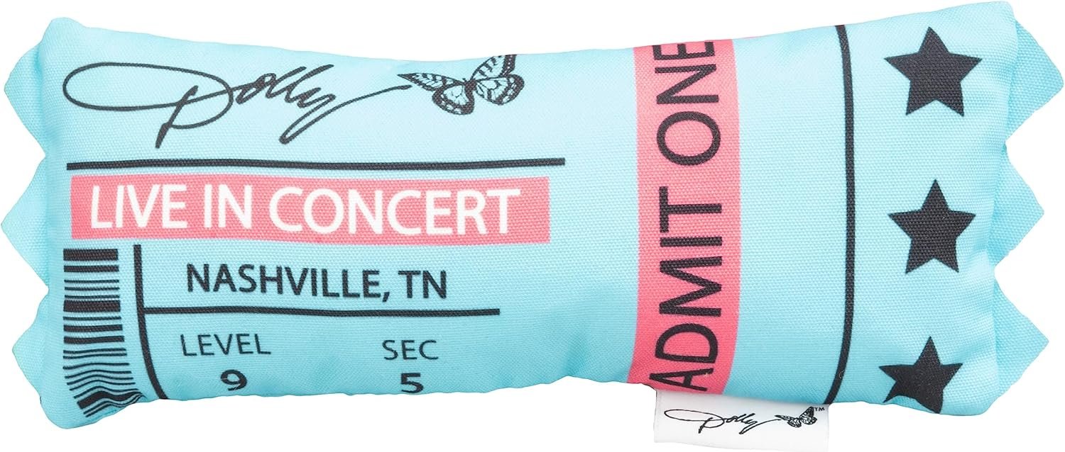 Calling all Dolly Parton fans! Introducing Doggy Parton’s Dolly Concert Ticket Crinkle Dog Toy! Your furry friend can now join in on the musical fun with this plush canvas toy featuring an exciting crinkle sound inside, providing sensory engagement and endless hours of entertainment for your pup. Get ready for a paw-tapping good time! Show your love for your pets with classic Dolly-worthy attire, accessories, and toys. Pets are our friends, family, and loyal companions. We love playing with them, spoiling, and doting on them and in return they make us feel happier and healthier. Check out the full Doggy Parton collection available in stores and online. We hope you will like it as much as we do!
