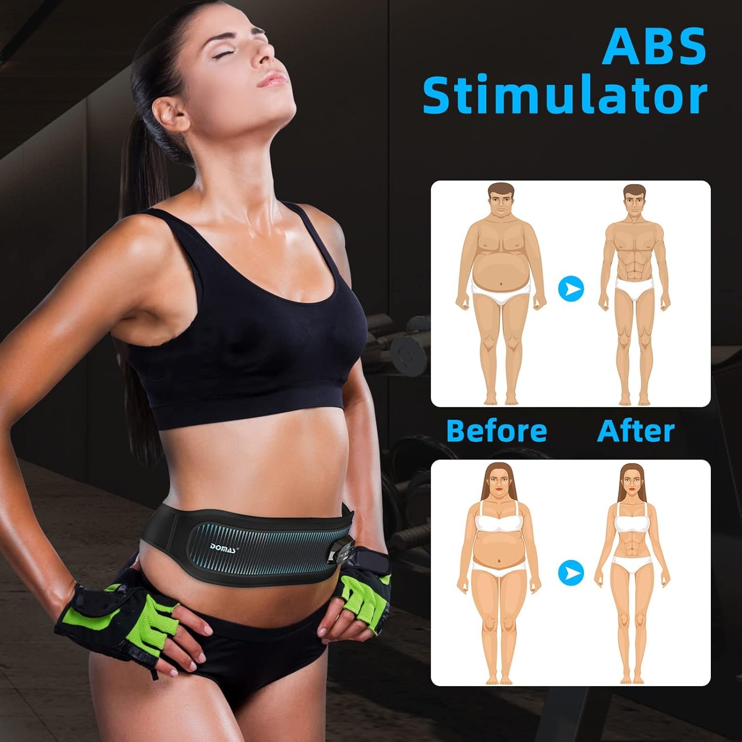 Double Channel EMS Abs Belt: DOMAS EMS abs belt is safe and simple to use with 40 intensity levels. Double Channel to personalize your toning level. No need for gym, medicine, or regular training