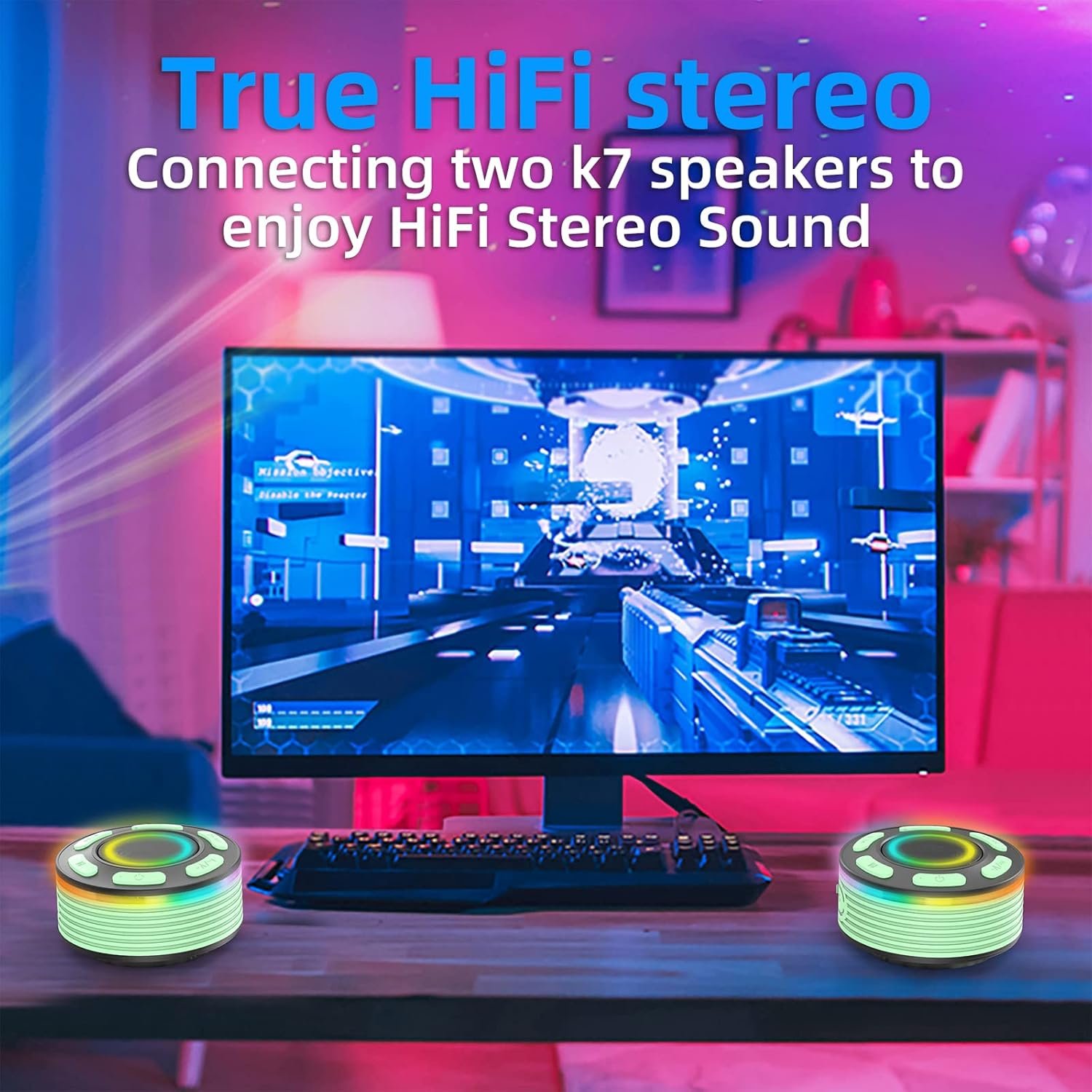 pairing mode: easily pairing function, it will show you unprecedented music feeling. you can purchase two K7 mini speakers at the same time to enjoy the surround sound of a movie theater. every time the two wireless bluetooth speakers are turned on, they will be connected automatically by themselves before they connect to any other bluetooth devices.
