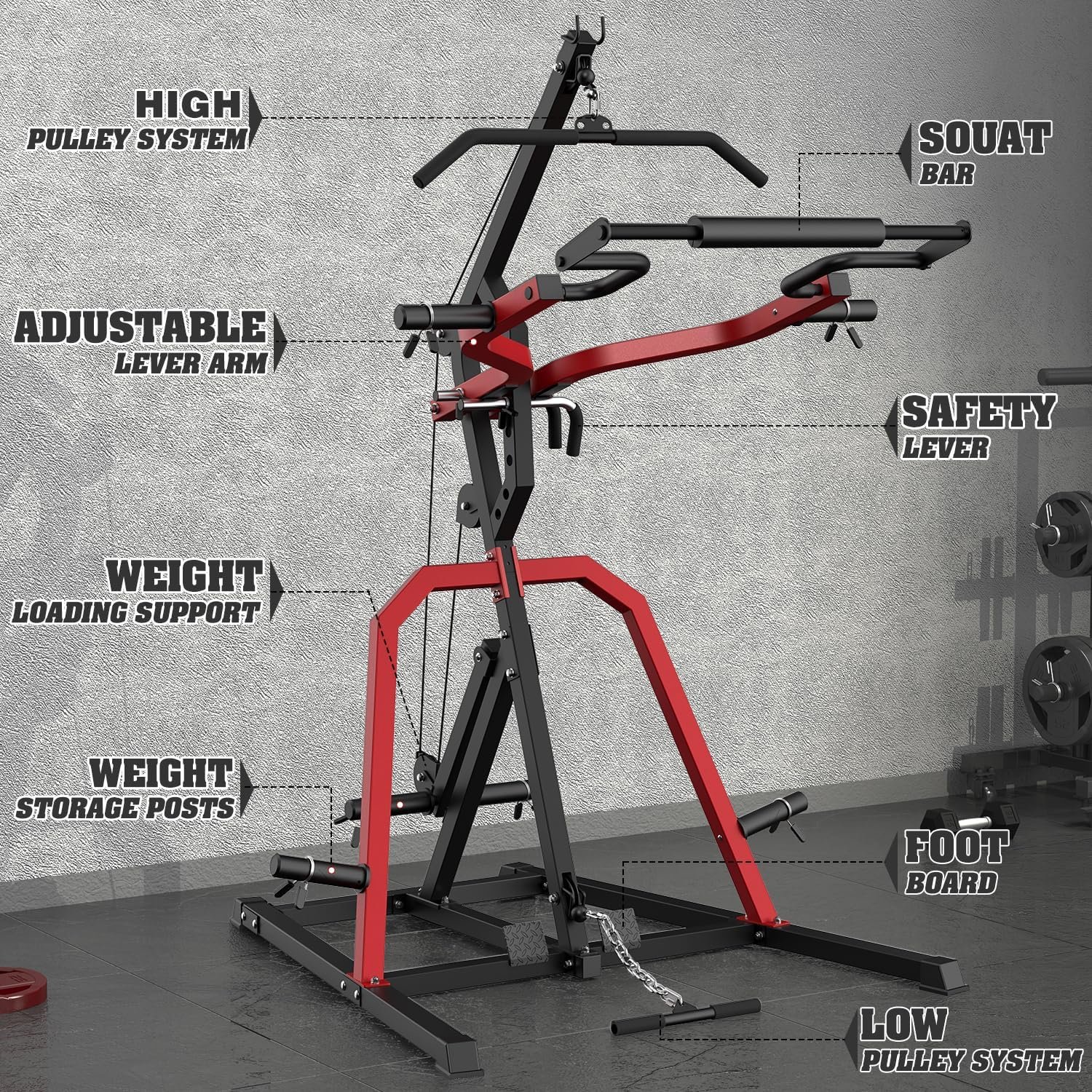 MULTIFUNCTIONAL LEVERAGE GYM: With DONOW leverage gym multi-function workout station, you can do bench press, squat, shoulder press, bicep curls, lat low rowing, deadlift, dip stand, pull up.,etc. This leverage gym is a perfect combo machine for small spaces such as a home gym or garage.
