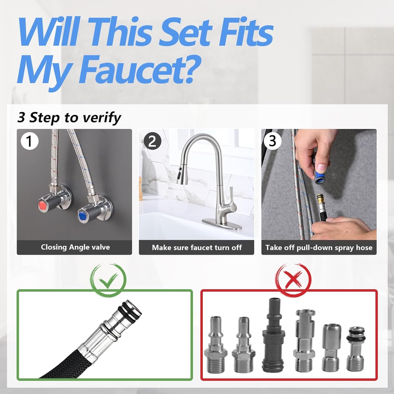Easy DIY Project: No plumber needed. This set can be installed in minutes. Note: Please refer to the pictures to identify compatible pull-down sprayer hoses