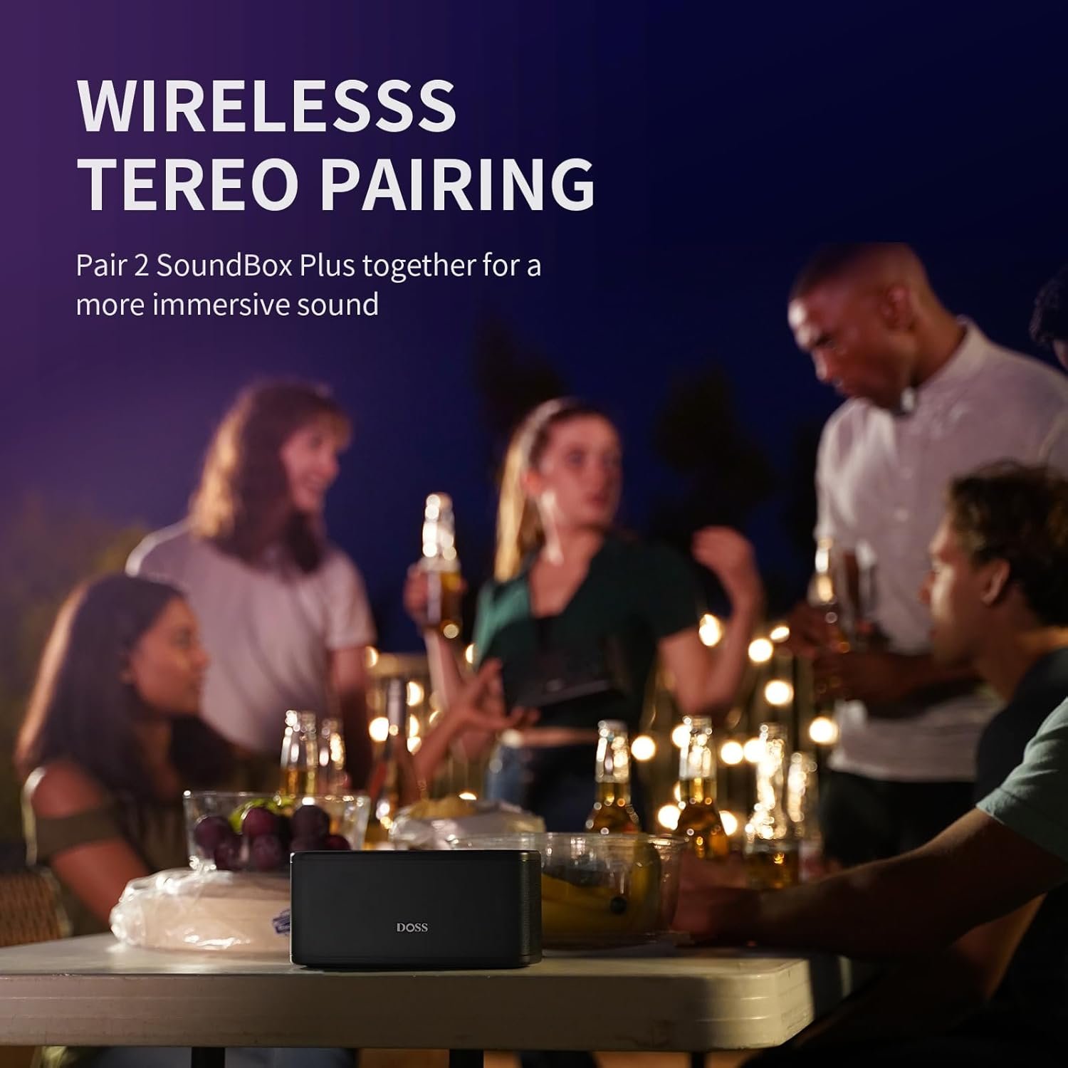 Wireless Stereo Pairing: Pair 2 SoundBox Plus speakers via a single device for a better stereo-surround sound and double the volume.