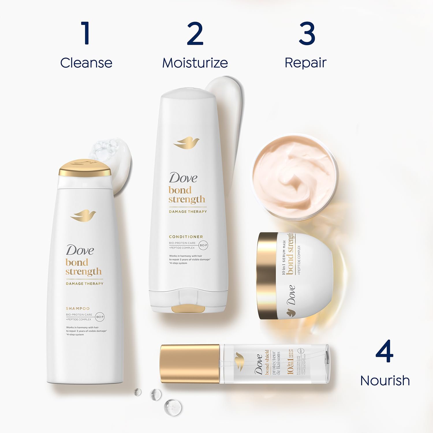 ADVANCED HAIR STRENGTHENING: Each Dove hair care product is infused with Bio-Protein Care + Peptide Complex, targeting the deepest layers of hair fibers, visibly restoring hair health and shine.