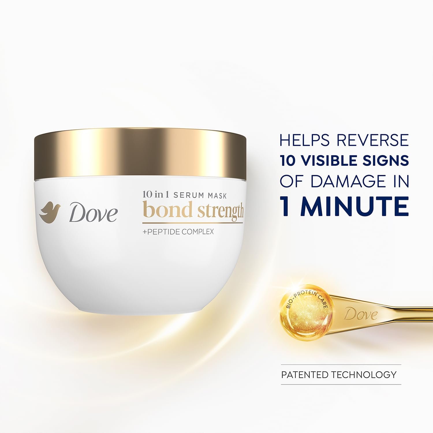10-IN-1 HAIR SERUM MASK: The Dove Bond Strength Serum Mask (9.2 oz) strengthens hair by 10x, making it smoother and shinier after every application.