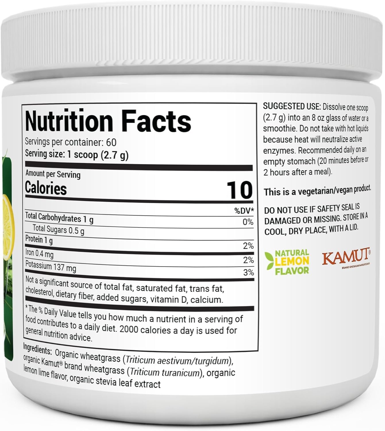 𝗡𝗢𝗡-𝗚𝗠𝗢 & 𝗖𝗘𝗥𝗧𝗜𝗙𝗜𝗘𝗗 𝗢𝗥𝗚𝗔𝗡𝗜𝗖 – This proprietary blend of raw wheatgrass greens powder is massively nutrient-dense, is high in Chlorophyll and provides a rich source of Phytonutrients. Grown in the rich soils of what used to be an ancient sea bed, our wheatgrass provides enormous amounts of Trace Minerals and other incredible natural nutrients.