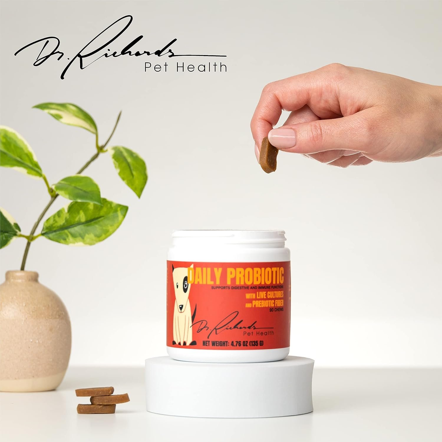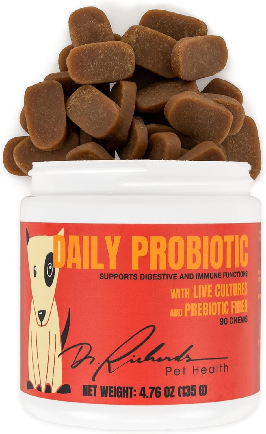 Easy to Use – Simply add one Dr. Richard’s Daily Probiotic chew to food, or feed as a treat, for every 25 pounds of body weight. Most dogs gobble them up without a problem. It is much easier than trying to get a dog to swallow a pill. This will quickly become your favorite canine supplement for a more active life