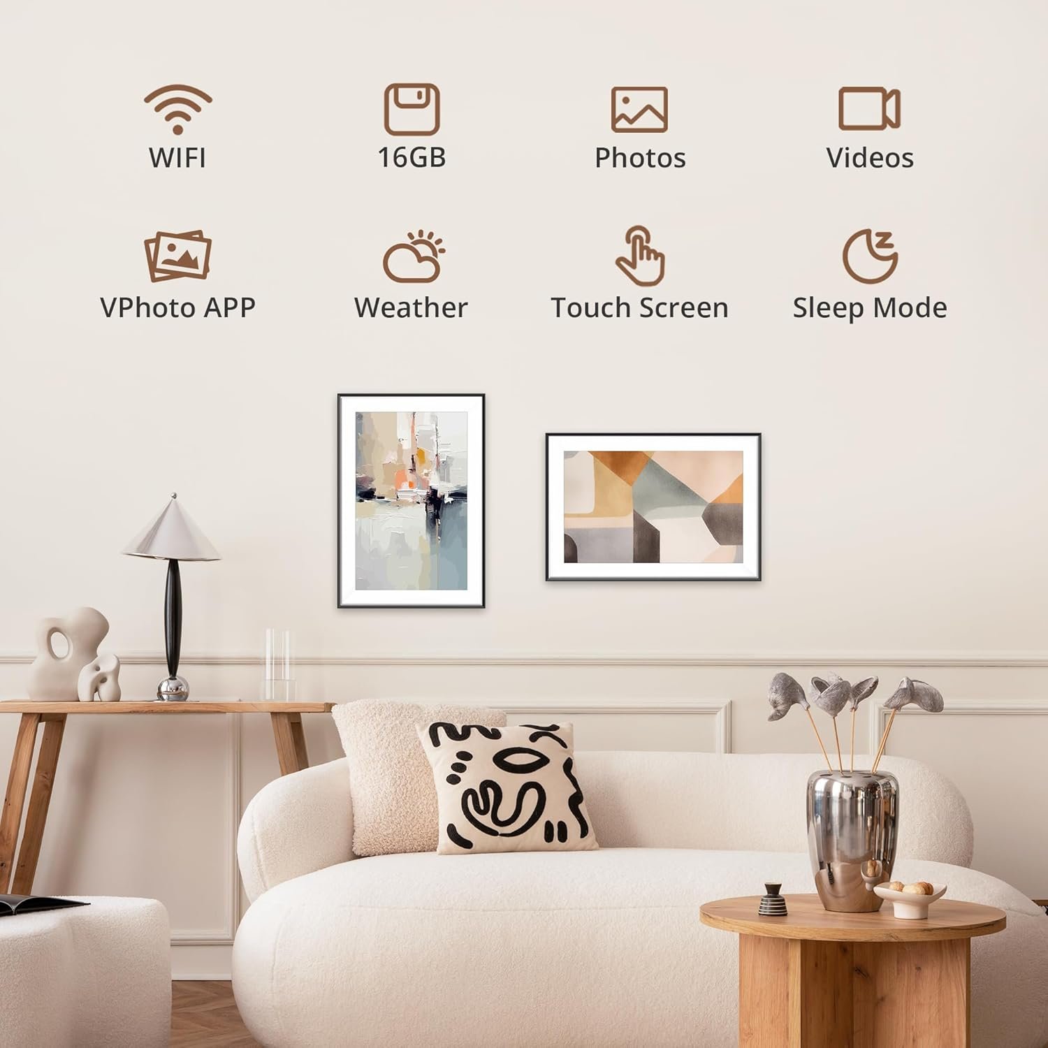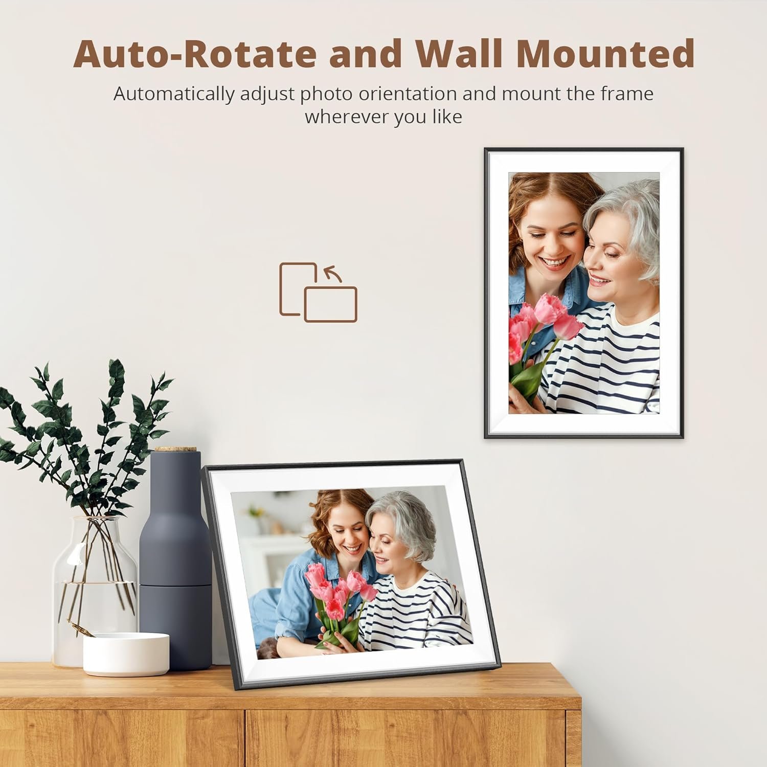 WONDERFUL PICTURE DISPLAY: This device features a high-quality 10.1” touch screen display with 1280*800 resolution and a 16:9 aspect ratio that beautifully showcases your precious memories. Customized sleep mode and auto-rotate settings enhance your viewing experience. You can position this frame in either portrait or landscape mode.