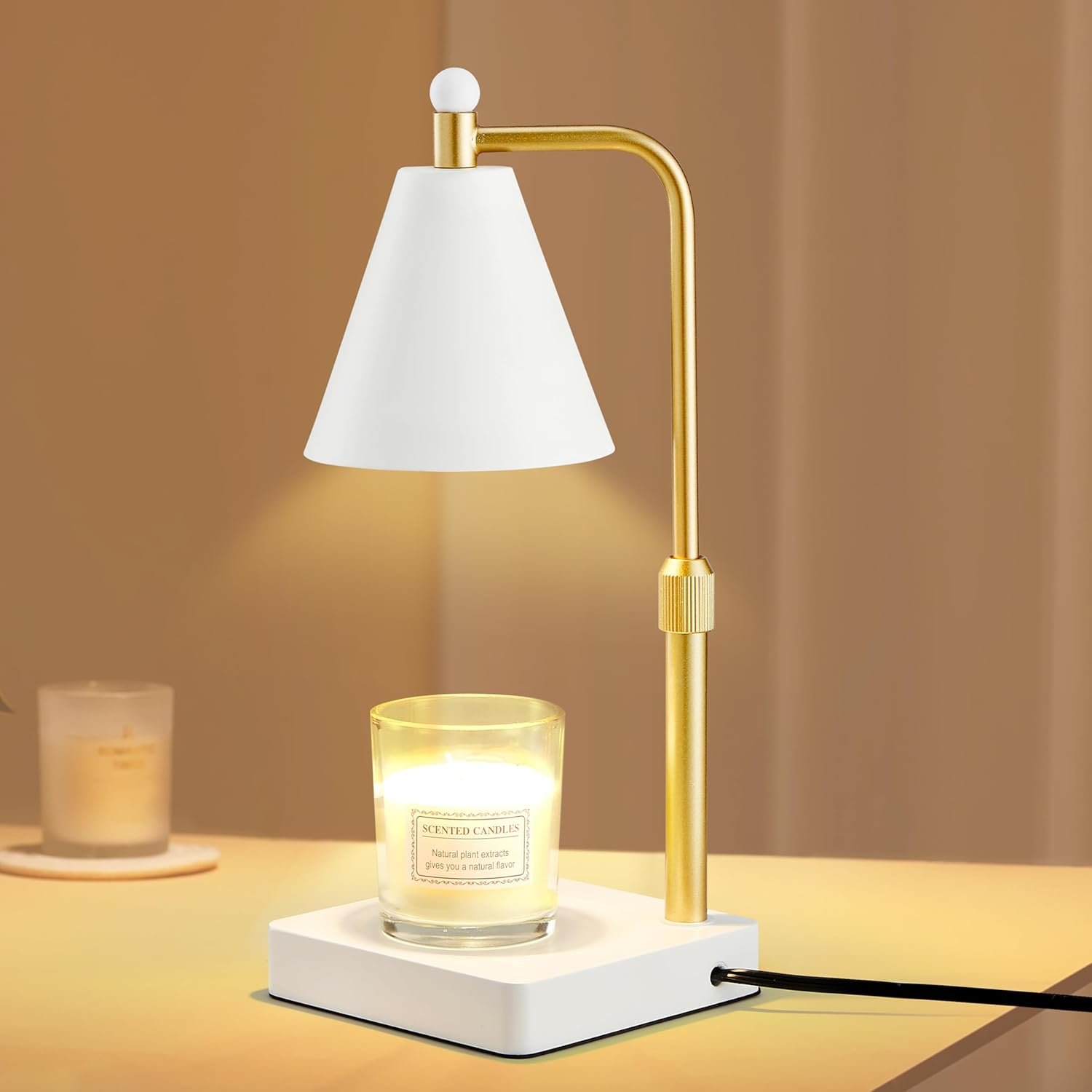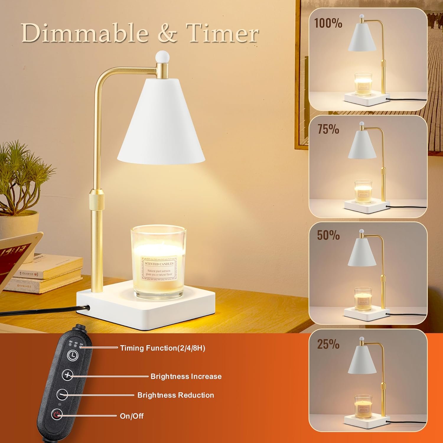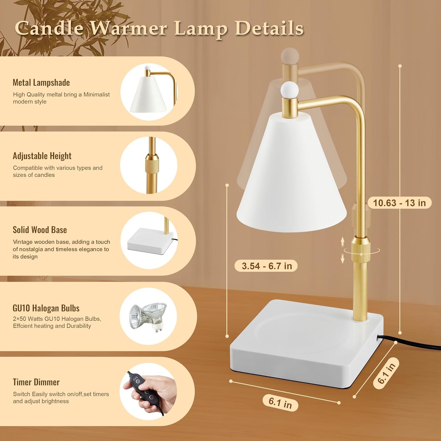 Candle Warmer Lamp with Timer & Dimmer, Vintage Wax Warmer Adjustable Height for Various Sizes Scented Candles (Gold&Black)
