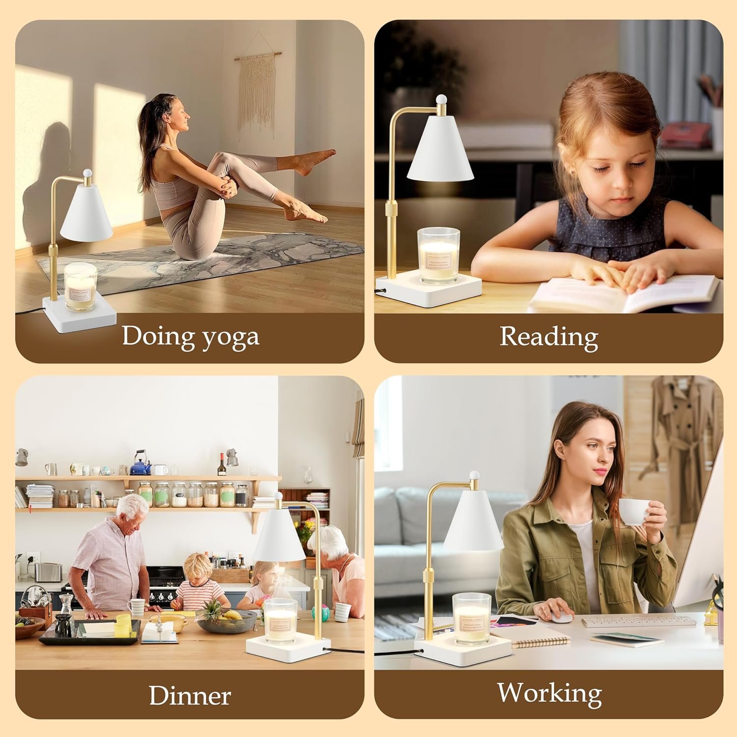 【Adjustable Height Function】Candle lamp warmer features an adjustable height function, allowing you to easily adjust the candle’s height based on your different needs – the height can be adjusted up to inches and lowered to inches, which makes the candle warmer fit in various kinds of candle jars, suitable for any space or occasion versatile as a bedside lamp or night light. Freshen up your room, home, break room, office