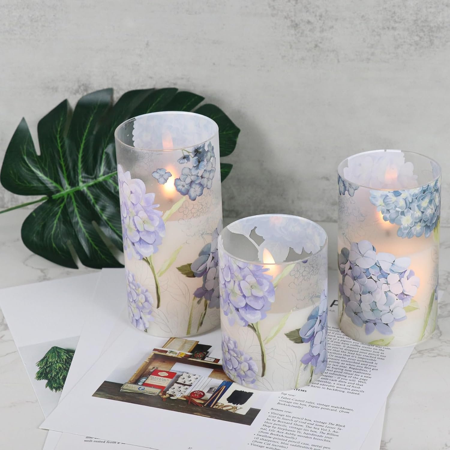 [Hydrangea Decals]: ❤Widely match with your other home decoration stylish. You can put these holiday decor flameless candles on your dinner table, fire place, bathroom and window as the centerpiece lights, also a good gift to your friends