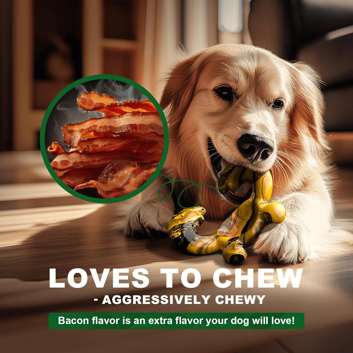 Durable Dog Chew Toy for Aggressive Chewers – Tough Nylon Bone for Medium Breeds, Interactive Teething Toy with Real Bacon Flavor, Keeps Dogs Busy, Christmas Birthday Gifts for Dogs