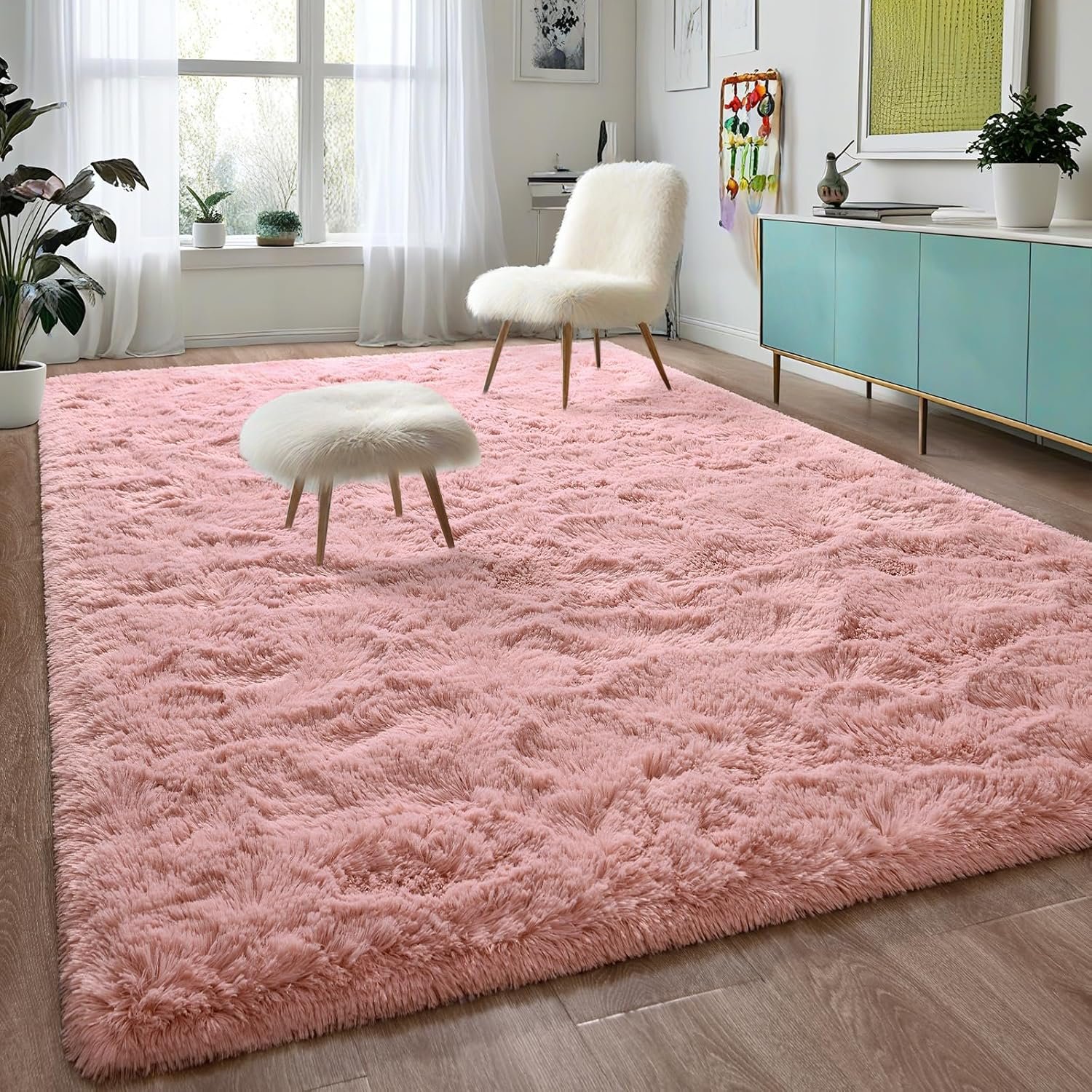 DweIke Super Soft Shaggy Rugs Fluffy Carpets, Pink Area Rug for Living Room Bedroom Girls Kids Room Nursery Home Decor, Non-Slip Plush Indoor Floor Bedside Rug, 5 ft X 8 ft, Pink