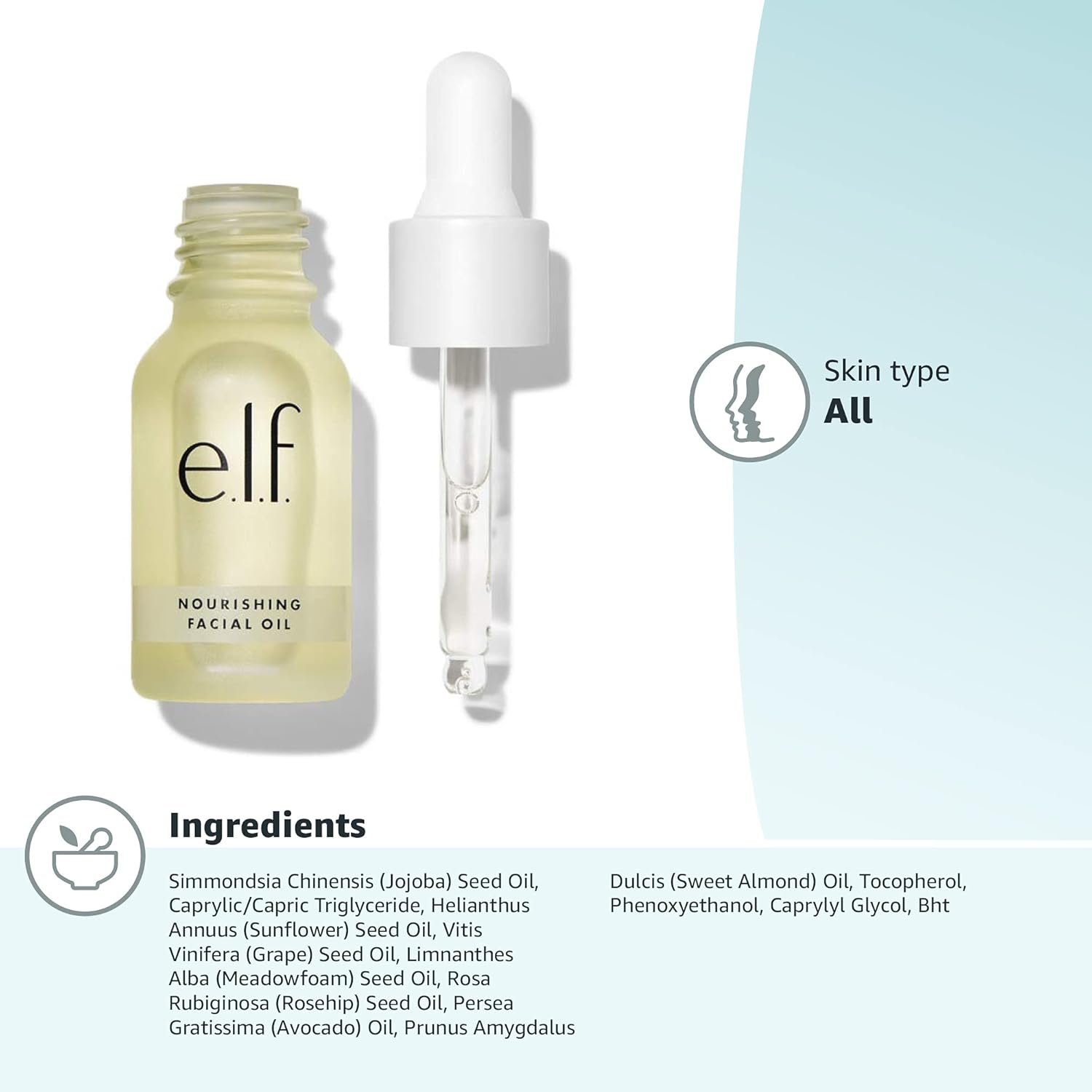 The nourishing facial oil is your secret weapon to a flawless face. With ingredients like Rosehip seed, jojoba, sunflower seed, grape seed, Meadowfoam, avocado, and sweet almond oil, your face looks naturally fresh and glowing. Beauty tip: mix 1-2 drops into your foundation for a dewy look. E.L.F. Makes the best of Beauty accessible to every eye, lip, and face. Your originality is infinite, and we are inspired by what makes you unique. From the early explorer to the trend-obsessed beauty junkie-glam or bare faced, minimalist, maximalist and every look in between-we are for every eye, lip, and face. Proud to be 100% vegan and cruelty-free, worldwide.