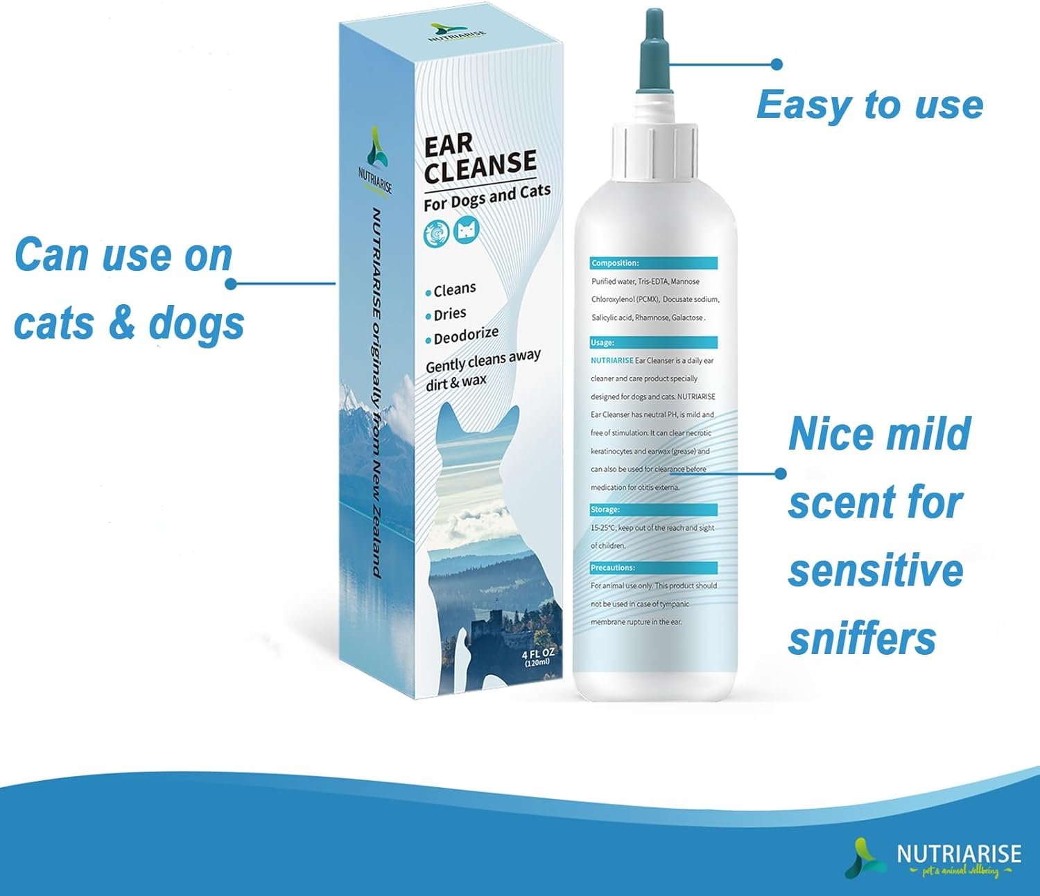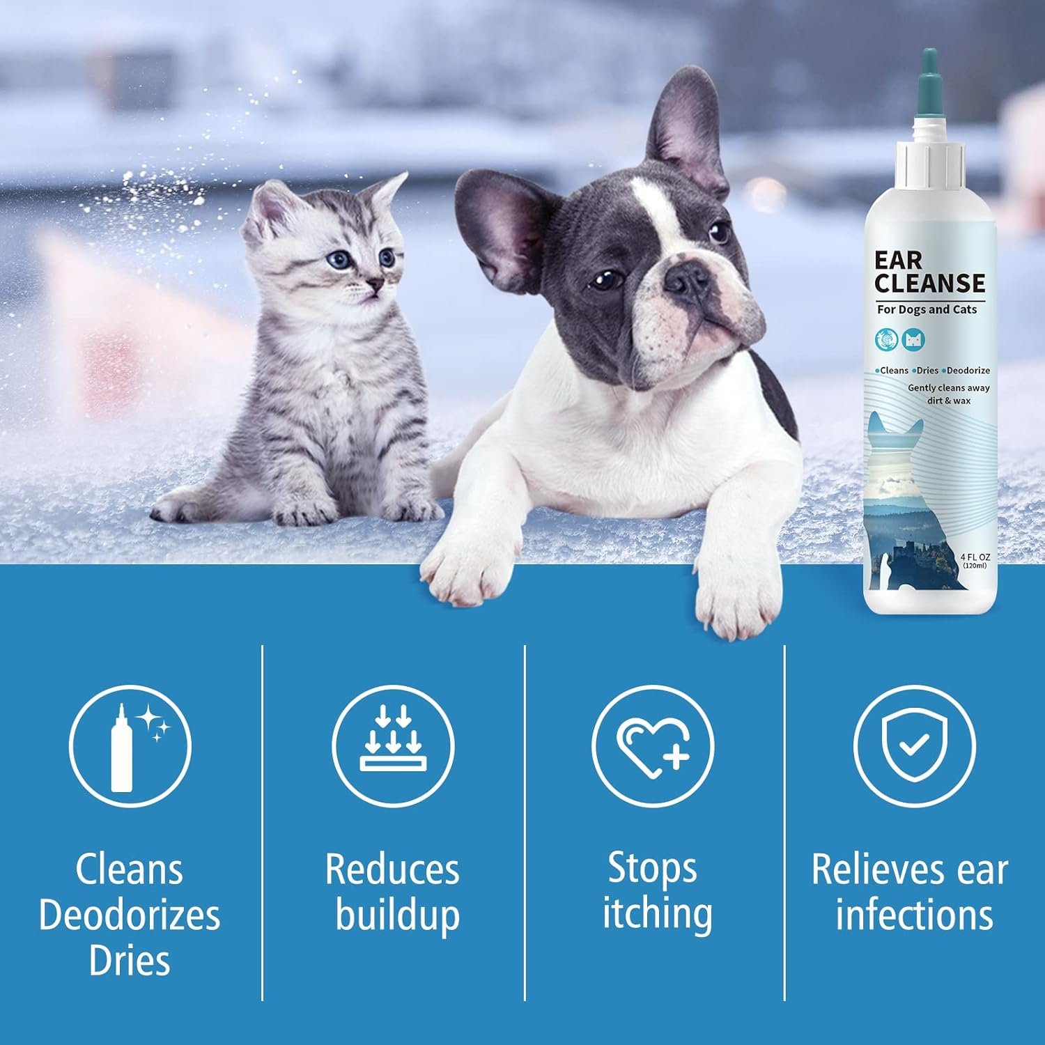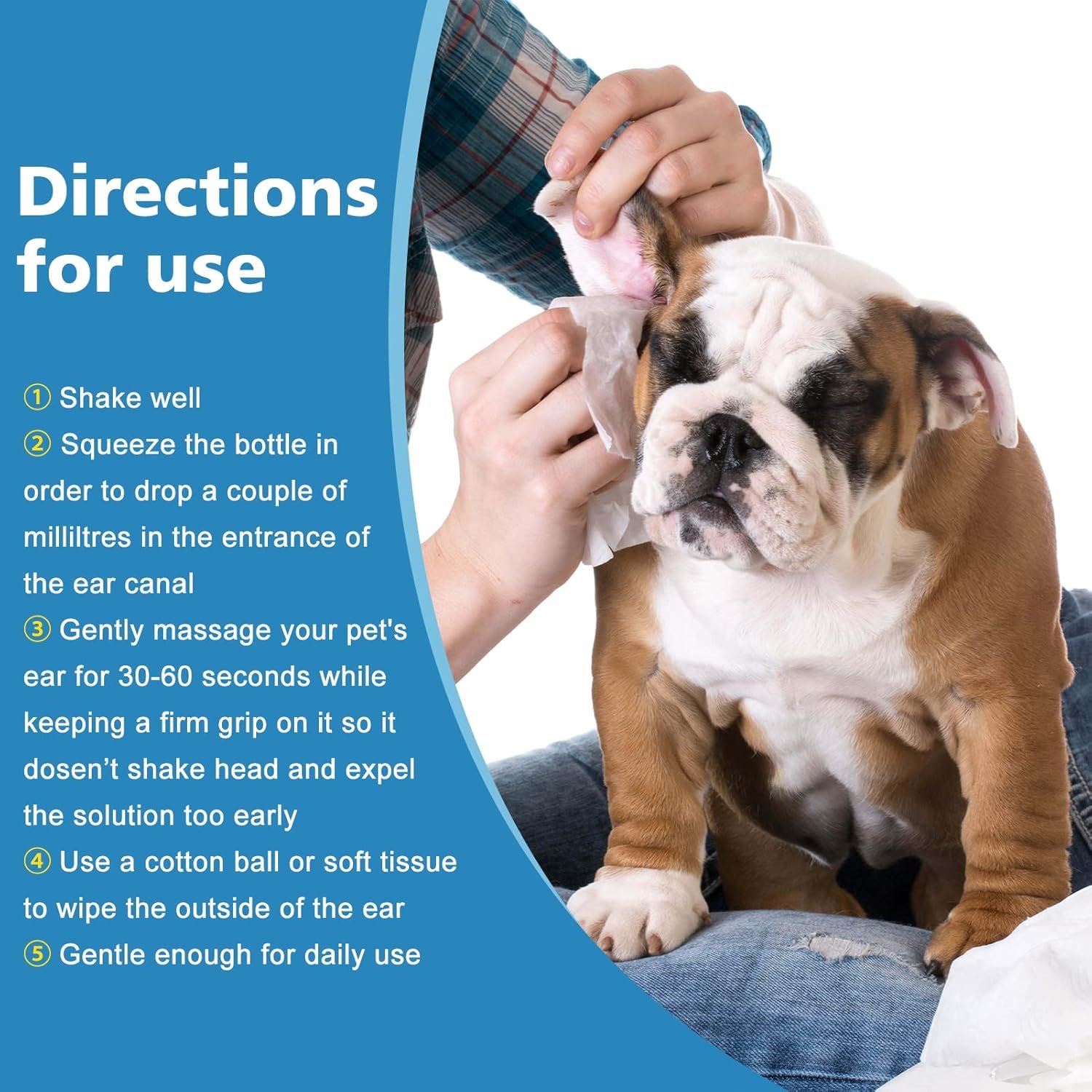 Eliminates wax, fluid, dirt, and debris build-up, relieving itching, scratching, and head shaking. Helps alleviate ear infections for your dog and cat.