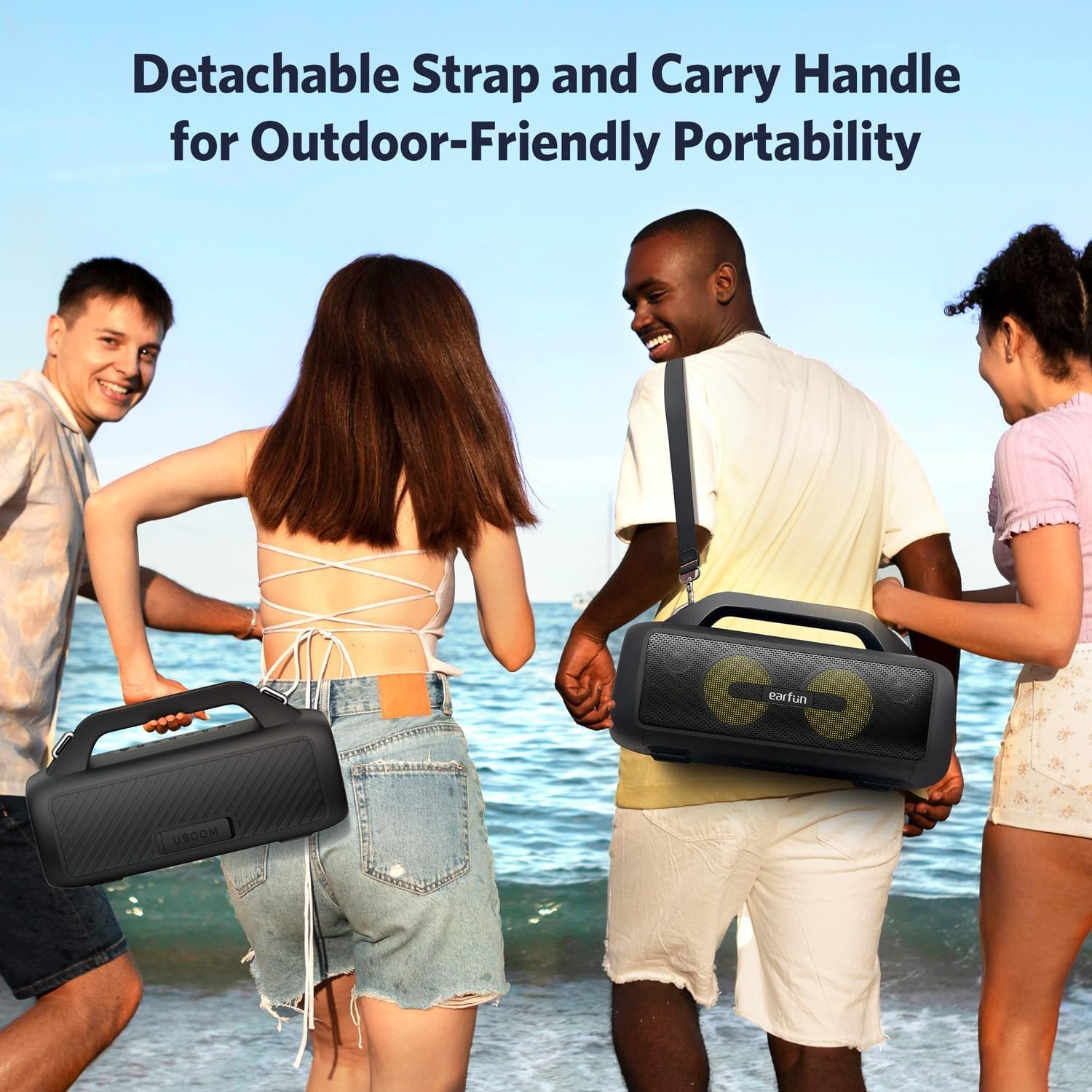 IP67 Waterproof & Dustproof: The UBOOM X speaker is built for the outdoors, using the advanced SweatShield Technology to protect from humidity and dust. The included carrying handle and strap make it perfect to bring to the beach, pool, or wherever party goes.