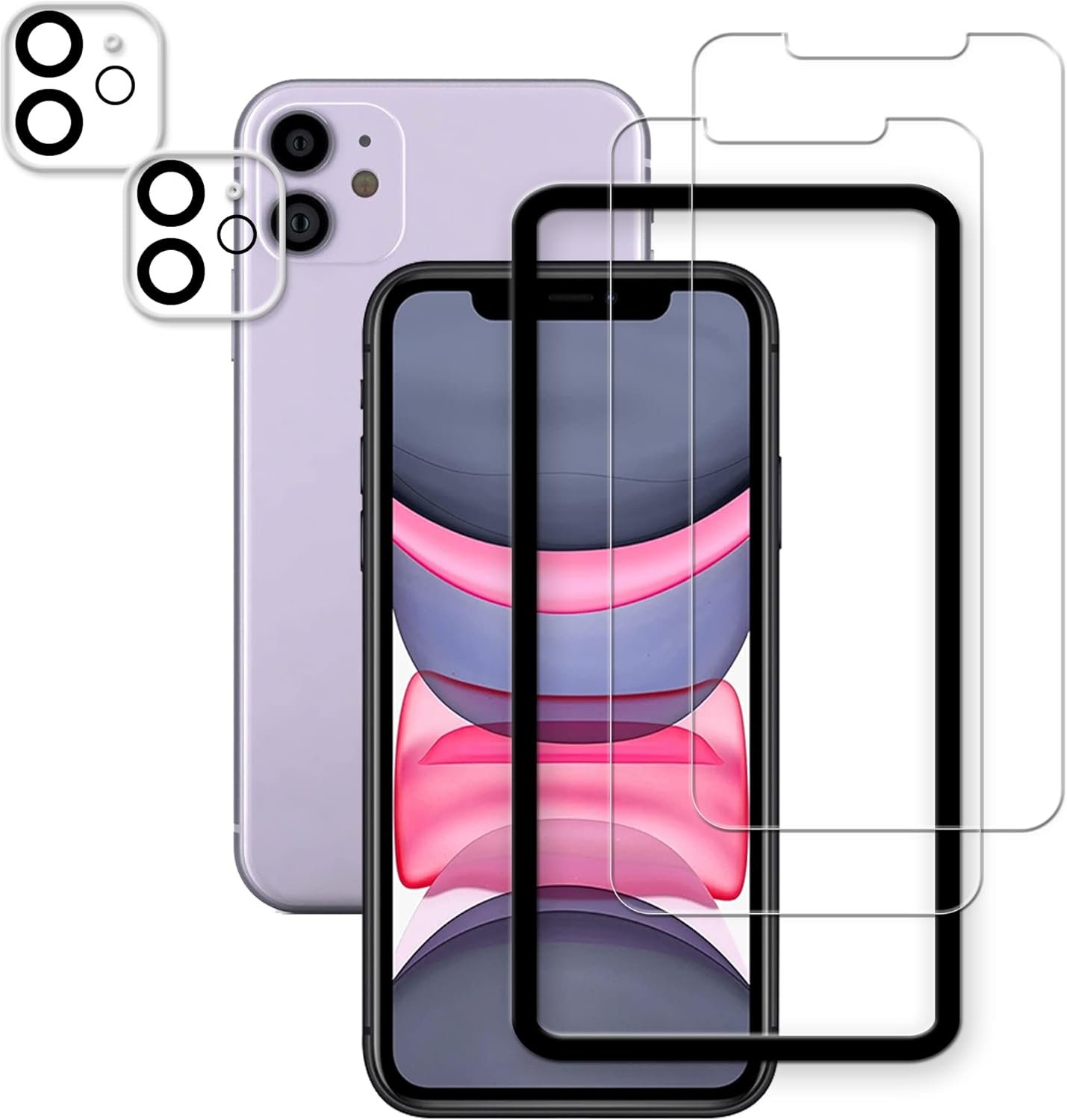 Designed For iPhone 11 .[2+2 Pack] tempered glass screen protector * 2 pack & camera lens protector * 2 pack .[Easy To Install] Comes with Easy Alignment Framel. one-push super easily installation.