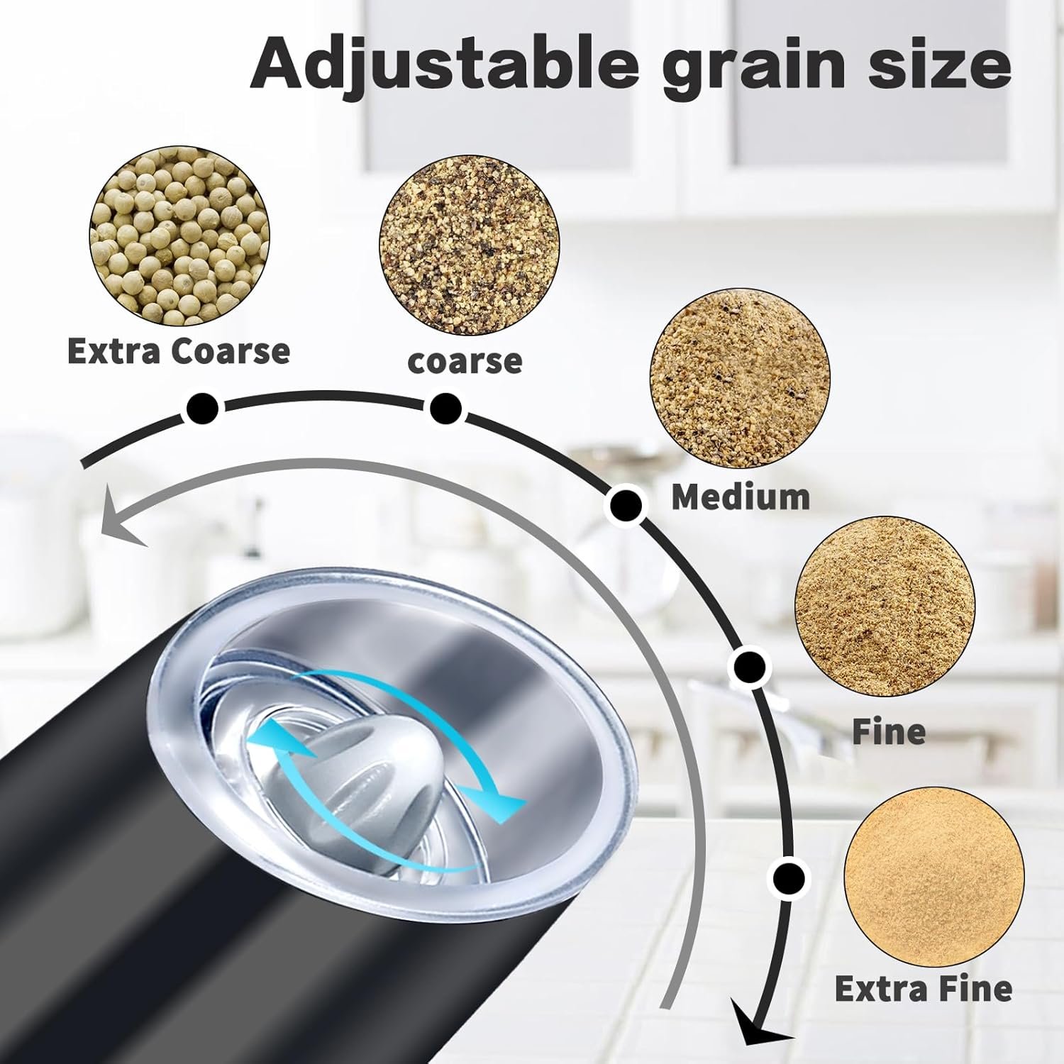 [ADJUSTABLE COARSENESS]: The grinders feature adjustable coarseness, so you can season your food to your desired taste. Whether you prefer fine or coarse, you can easily customize the grind for perfect seasoning every time.