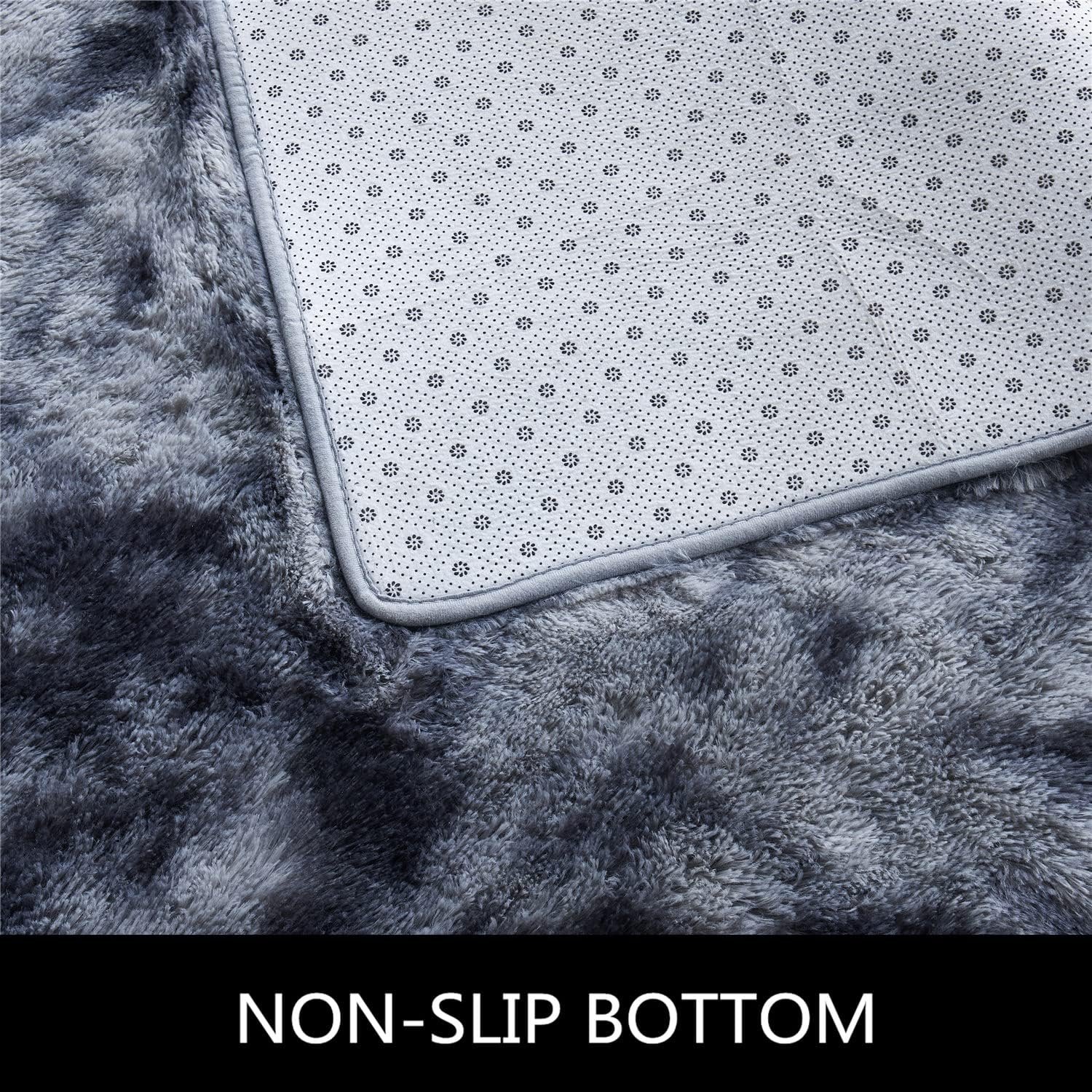 【Non-slip Bottom】Living room rug is covered with thousands of plastic beading dots, which can prevent the rug moving or shifting on the floor or tile. Children and pets can play freely on it. The fluffy carpet is a great decoration for children’s bedroom, nursery, classroom and dormitory.