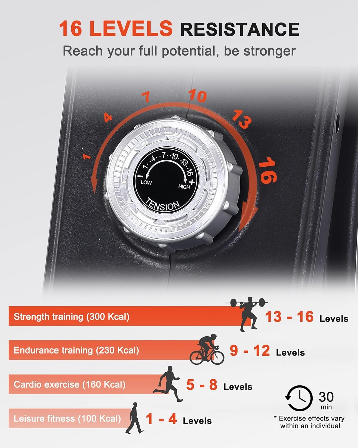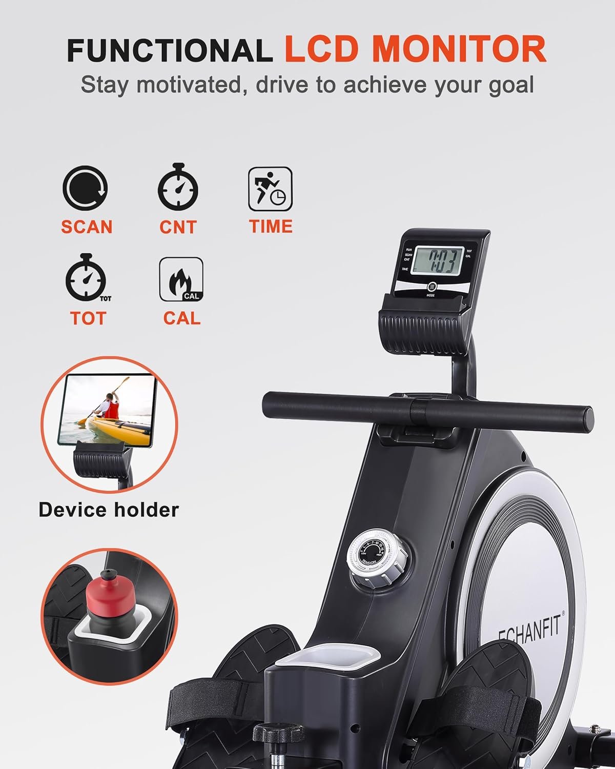 Magnetic Resistance by ECHANFIT: The rowing machine utilizes a magnetic resistance mechanism, which ensures a quieter and smoother rowing experience compared to traditional air or water rowers.With 16 adjustable levels of resistance, it caters to all fitness levels, from beginners to advanced athletes, allowing users to gradually increase workout intensity.