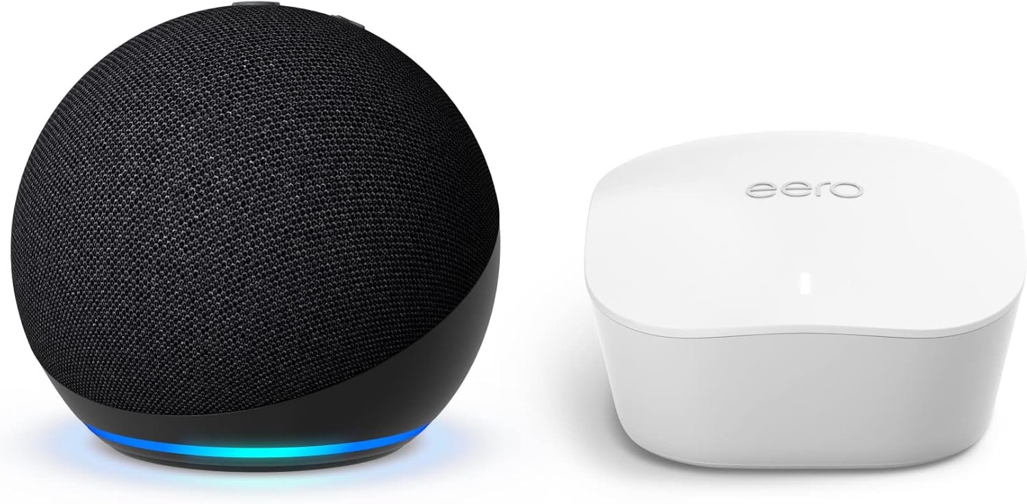 This bundle includes Echo Dot (5th Gen) – Charcoal and Amazon eero mesh wifi router.
