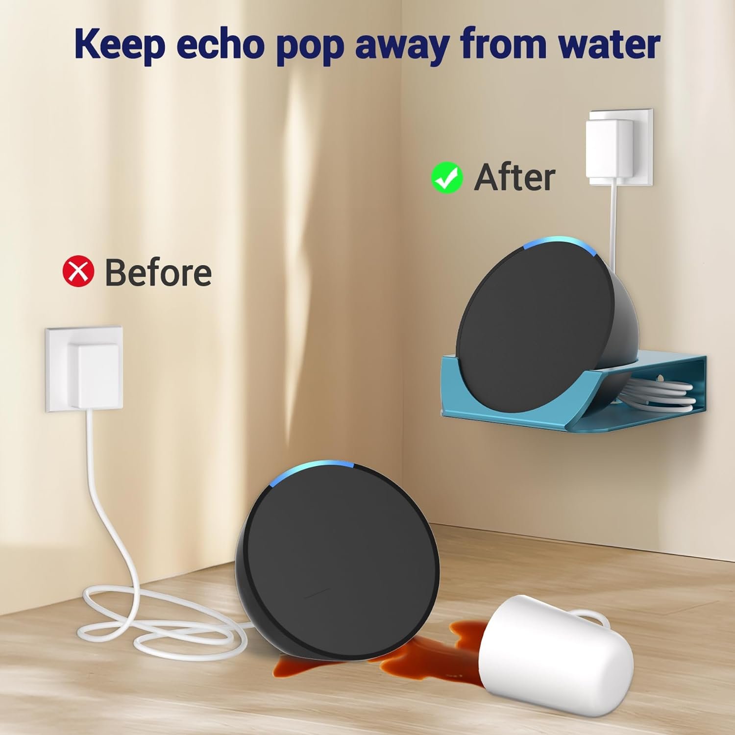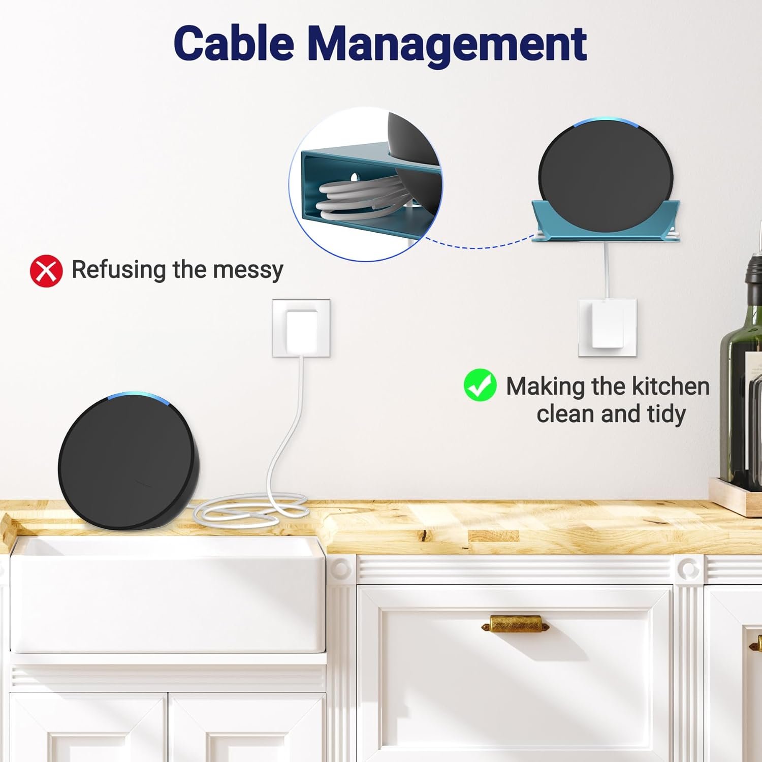 Cable Organizer: The Echo Pop holder comes with straps that can conceal excess cables behind the speaker, keeping the cables organized and ensuring a neat and tidy installation.