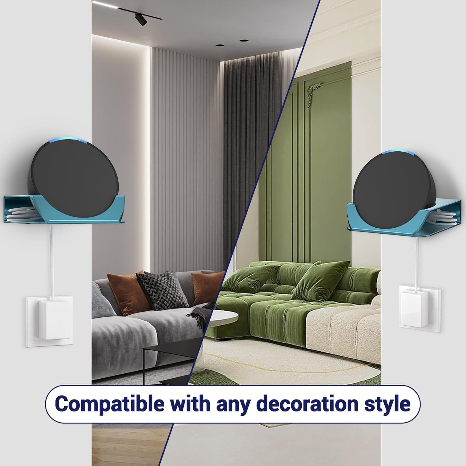 Blends with Your Home: You can choose from silver or teal wall brackets to match your speaker, decorate your walls, and make efficient use of your room space. The Echo Pop wall shelf mount is ideal for bedrooms, kitchens, bathrooms, living rooms, and various other occasions.