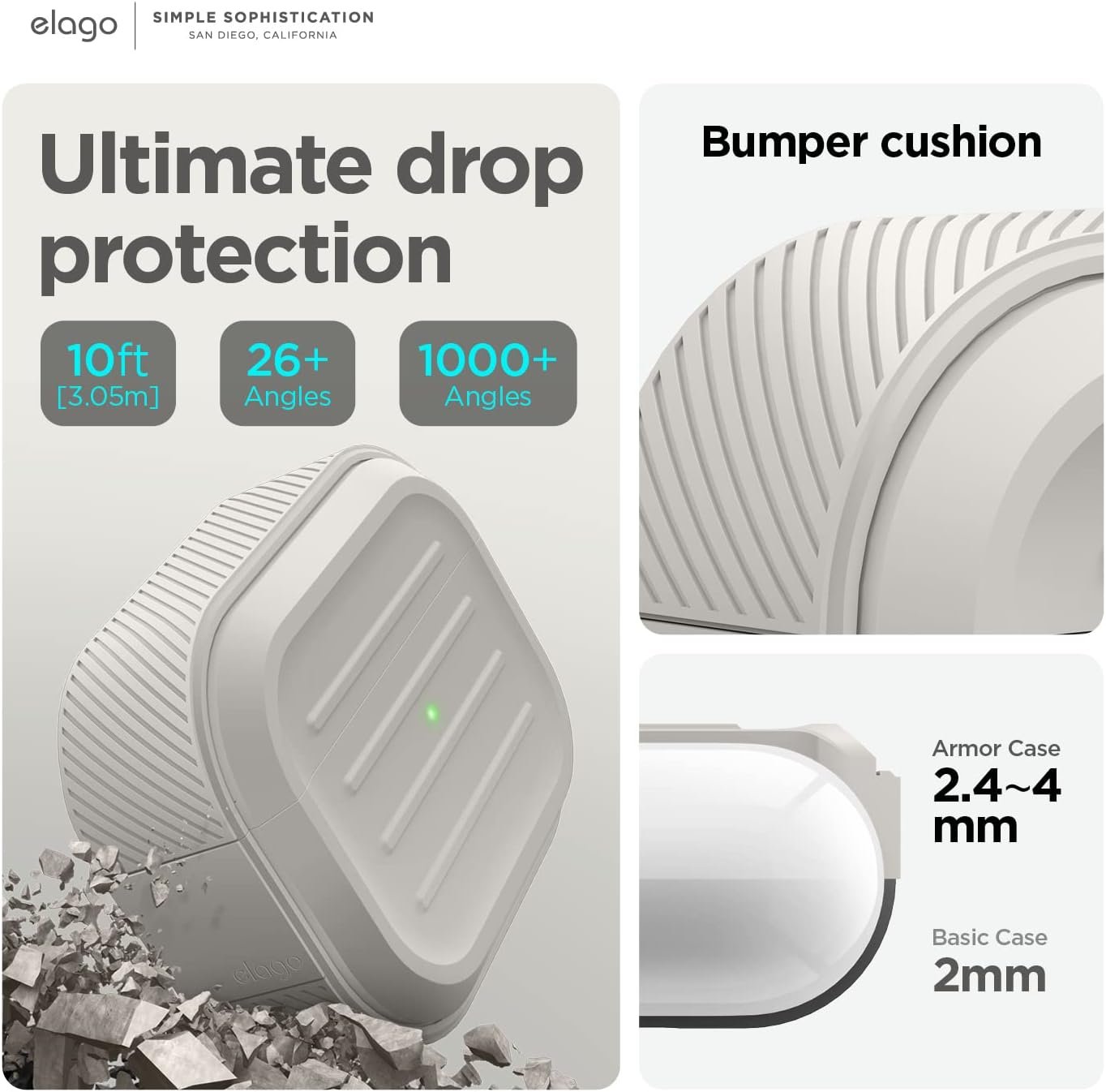 ELAGO IS BRINGING BACK A CLASSIC ARMOR DESIGN THAT helps you protect your charging case by providing INCREDIBLE DROP PROTECTION! PROTECT your device WITHOUT THE BULK and have ACCESS TO ALL FUNCTIONS of your charging case – like WIRELESS CHARGING.