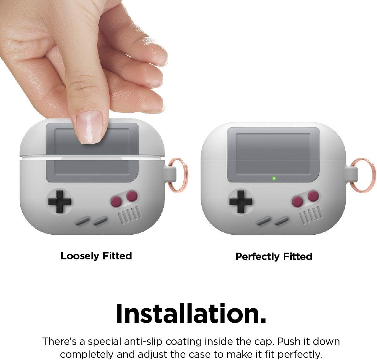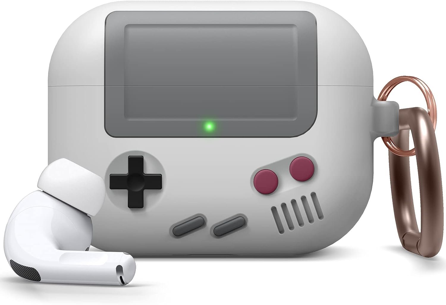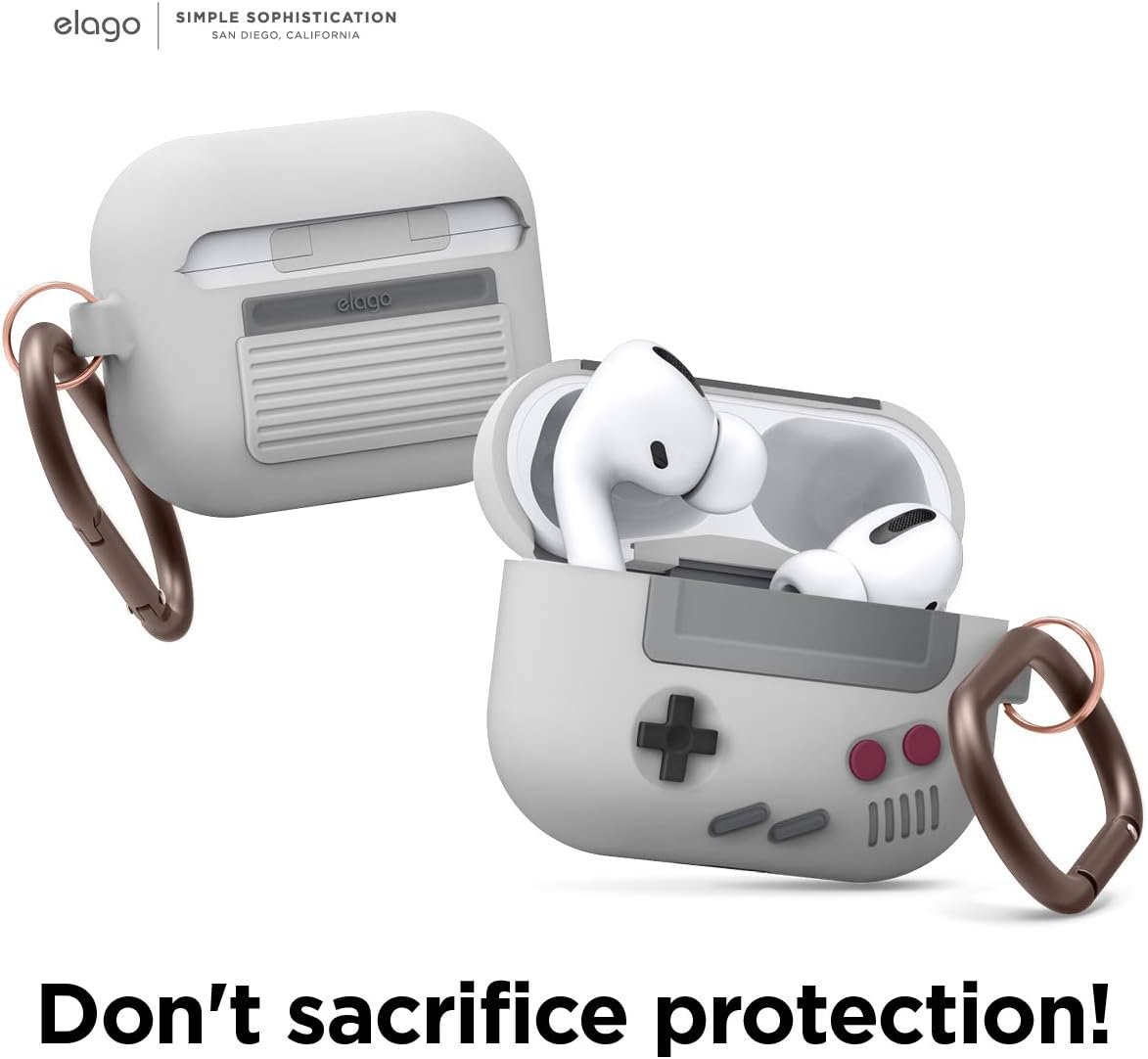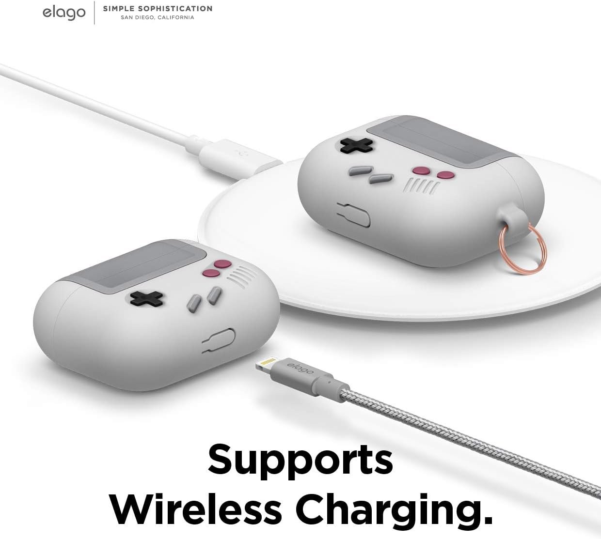 elago AW5 Compatible with Airpods Pro Case, Classic Handheld Game Console Design Case with Keychain, Durable Silicone Construction, MagSafe Compatible [US Patent Registered] [Light Grey]