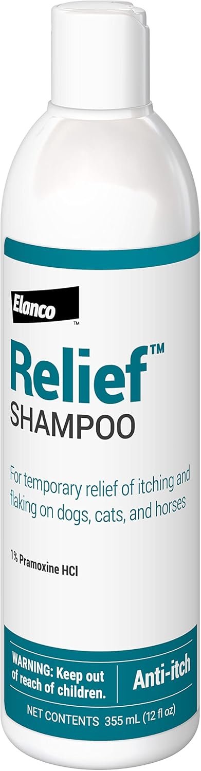 Elanco Relief Shampoo, temporary relief of itching and flaking, moisturizer for dry skin and coat, for dogs, cats and horses, 12 oz