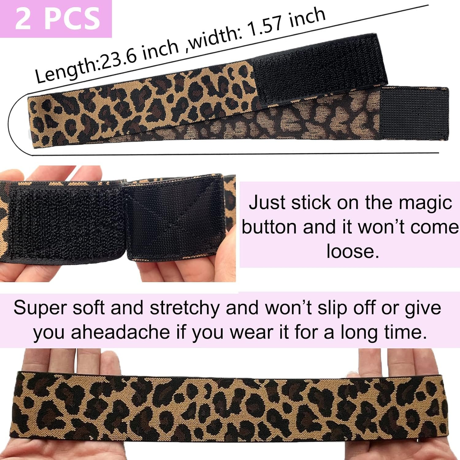 【Super Easy To Use】Features A Velcro Strap Which Makes It Easy To Adjust The Tightness,No Need To Tie Knots, Just Stick On The Magic Button And It Won’t Come Loose, It Doesn’t Stick To Your Hair And Cause You Any Inconvenience .