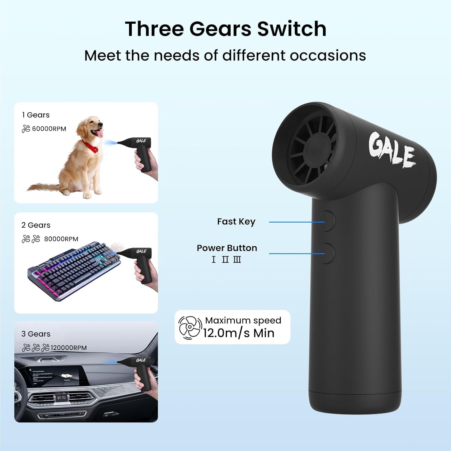 🚀 High-Speed Motor: With a maximum speed of 100,000 RPM and a wind pressure of 200 grams, our air duster delivers exceptional performance, boasting a peak wind speed exceeding 50m/s. It effectively clears dirt and debris from keyboards, electronic devices, and more.