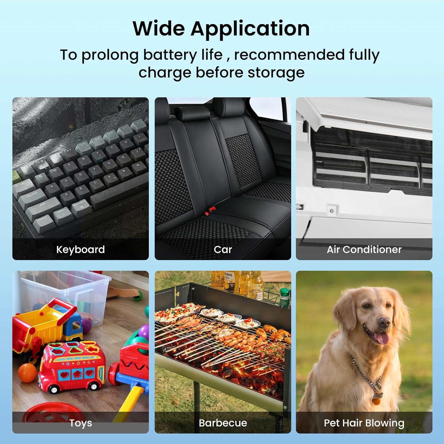 🛠️ Versatile Applications: Perfect for cleaning computer keyboards, laptops, cameras, car seats, blinds, and more. It can also be used for inflating products like air beds and lifeboats, as well as for outdoor activities such as picnics and fire-making.