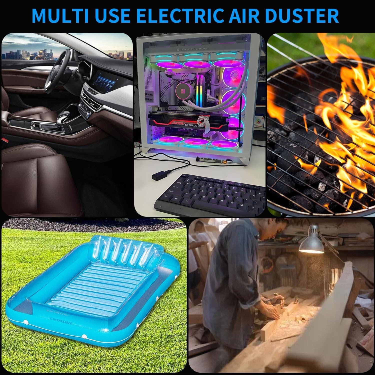 ✅ 【Suitable For Various Scenarios】Our jet dry blower can be used as a blow dryer to dry pets’ hair, it can also be used as an air cleaner for computers, keyboards and cars, it can also be used as a jet blower for picnics fires, and it can also be used outdoors Inflate inflatable equipment, such as inflatable beds, lifeboats, etc. It will become a good companion for your daily life.computers & keyboard cleaners.