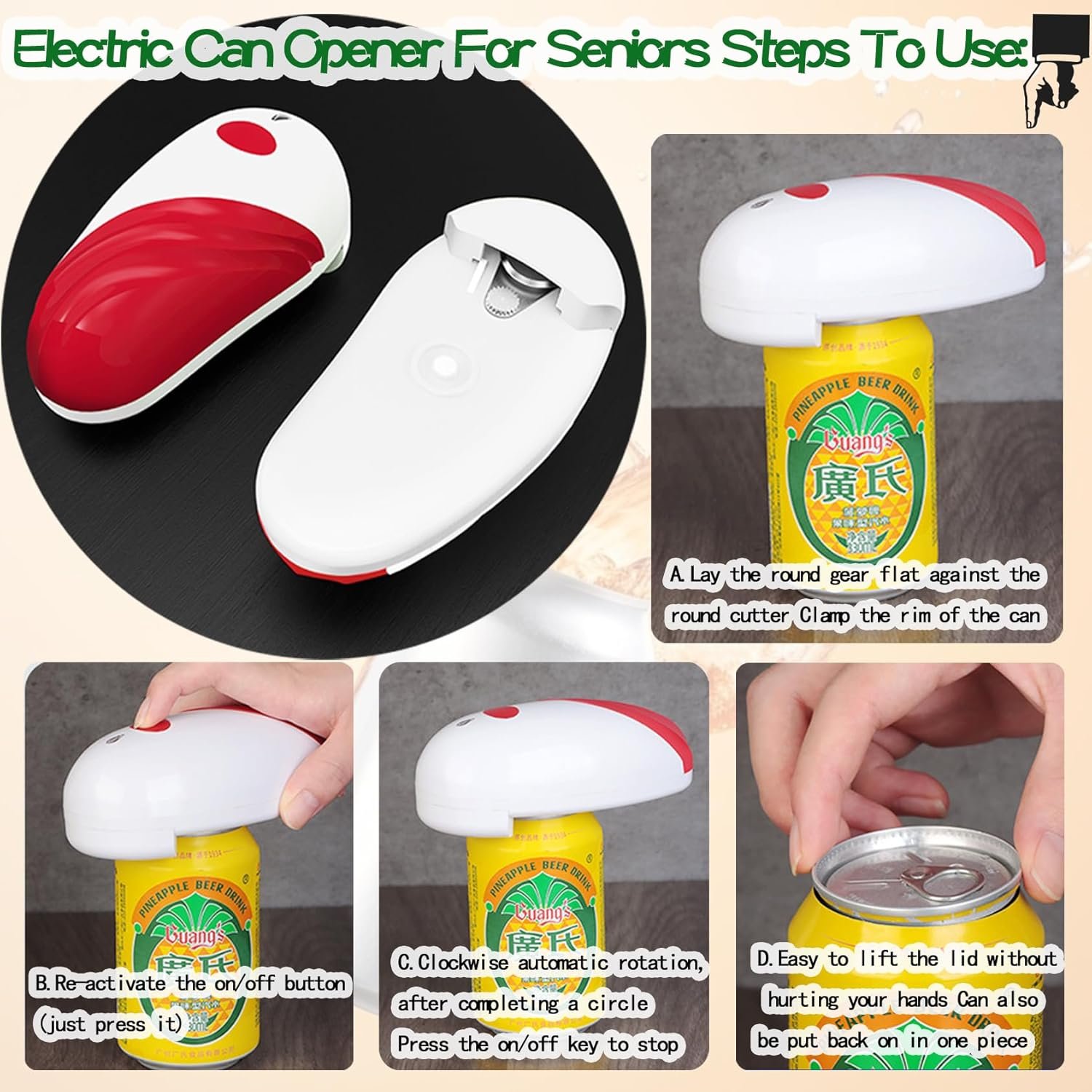 AUTOMATIC CAN OPENER HANDS FREE : Battery operated can openeris perfect for seniors with arthritis, people with hand injuries or limited grip strength, one-handed and left-handed people, or anyone looking for a quicker way to open a can.