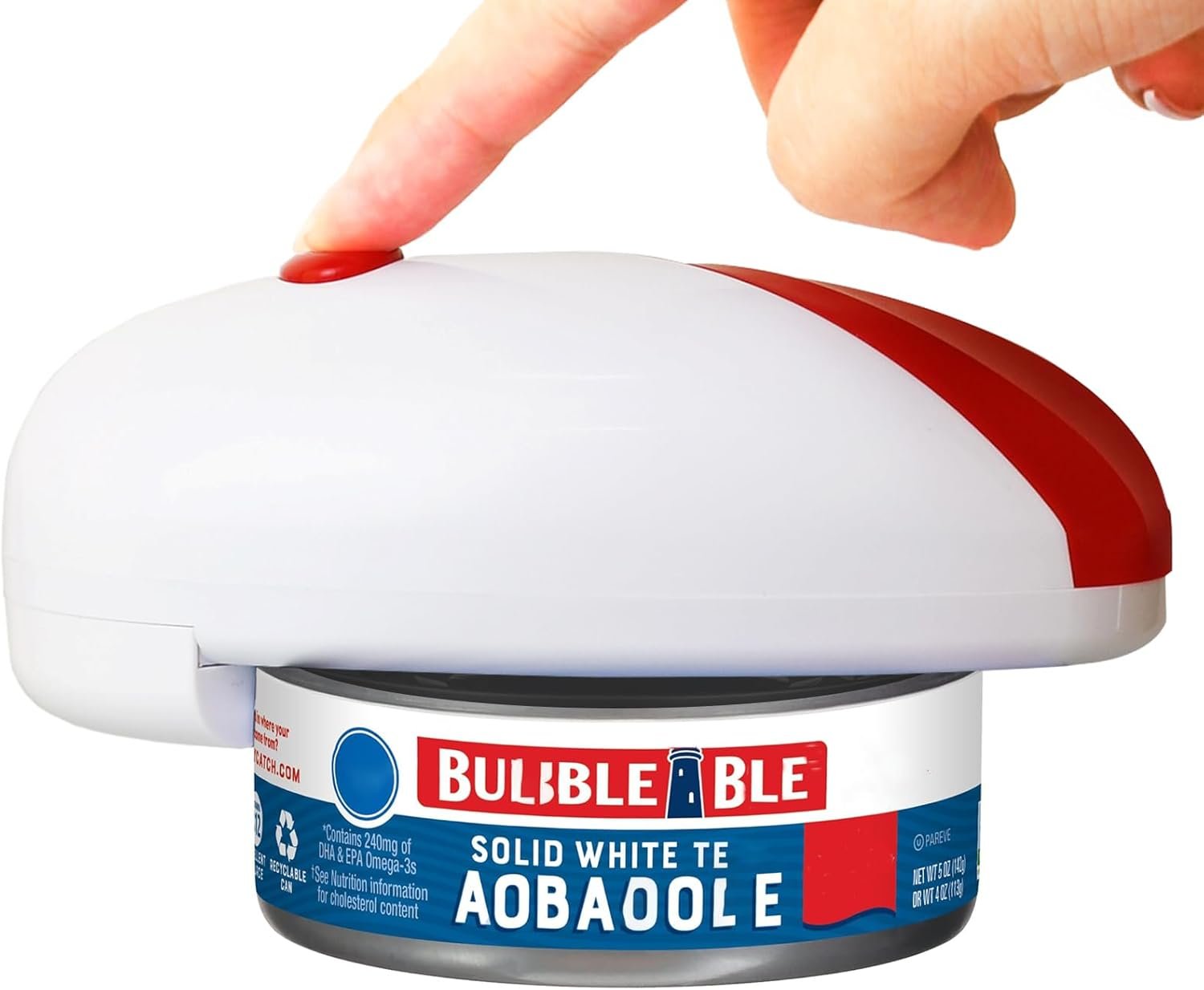 NOTE:The electric can opener has a safety feature that won’t work unless it is actually placed on the can. So, after placing it on the can and pressing the button, the can opener automatically rotates 360 degrees. After pressing the button again, the machine finishes cutting the can.