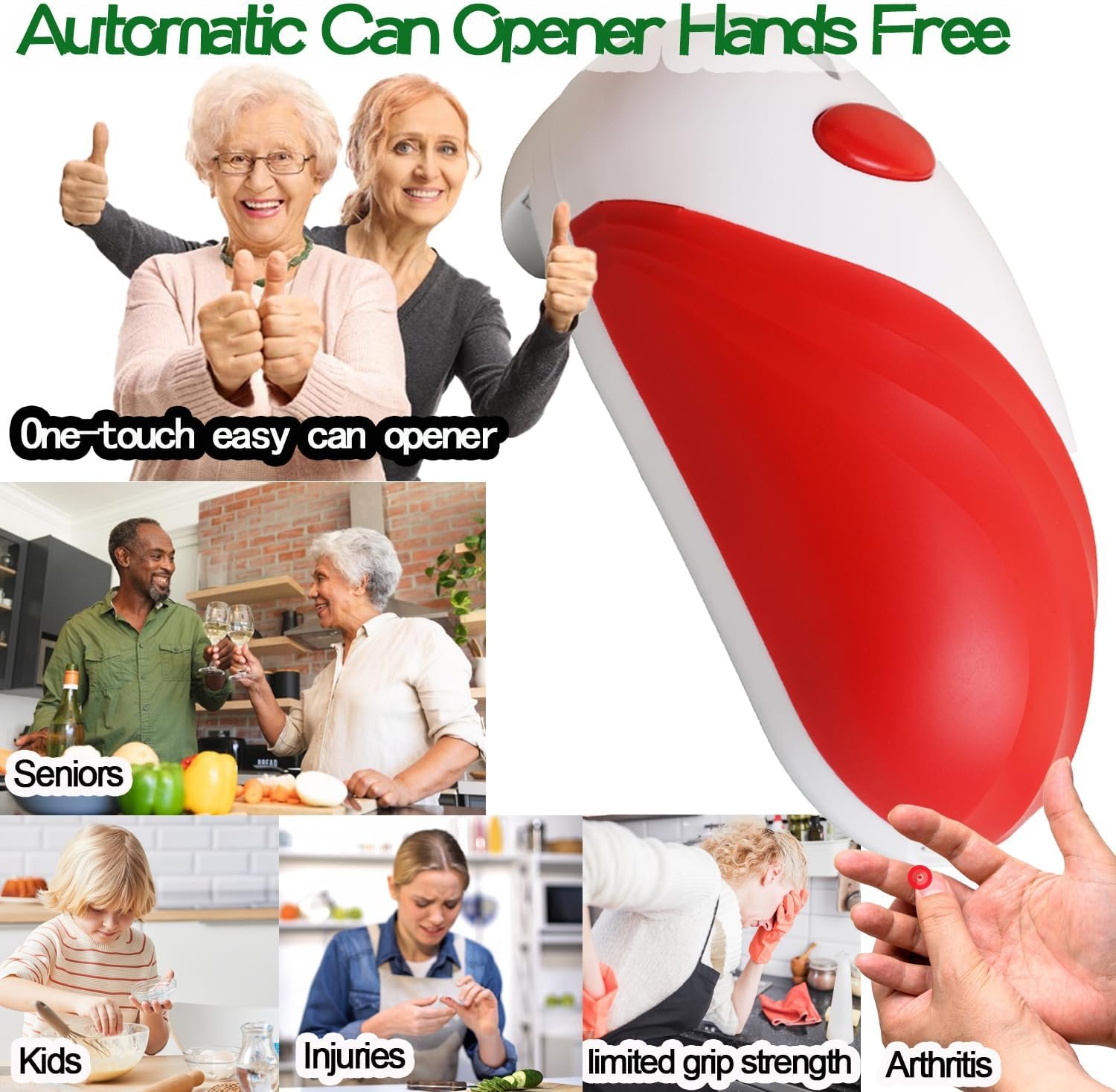 AUTOMATIC CAN OPENER HANDS FREE : Battery operated can openeris perfect for seniors with arthritis, people with hand injuries or limited grip strength, one-handed and left-handed people, or anyone looking for a quicker way to open a can.
