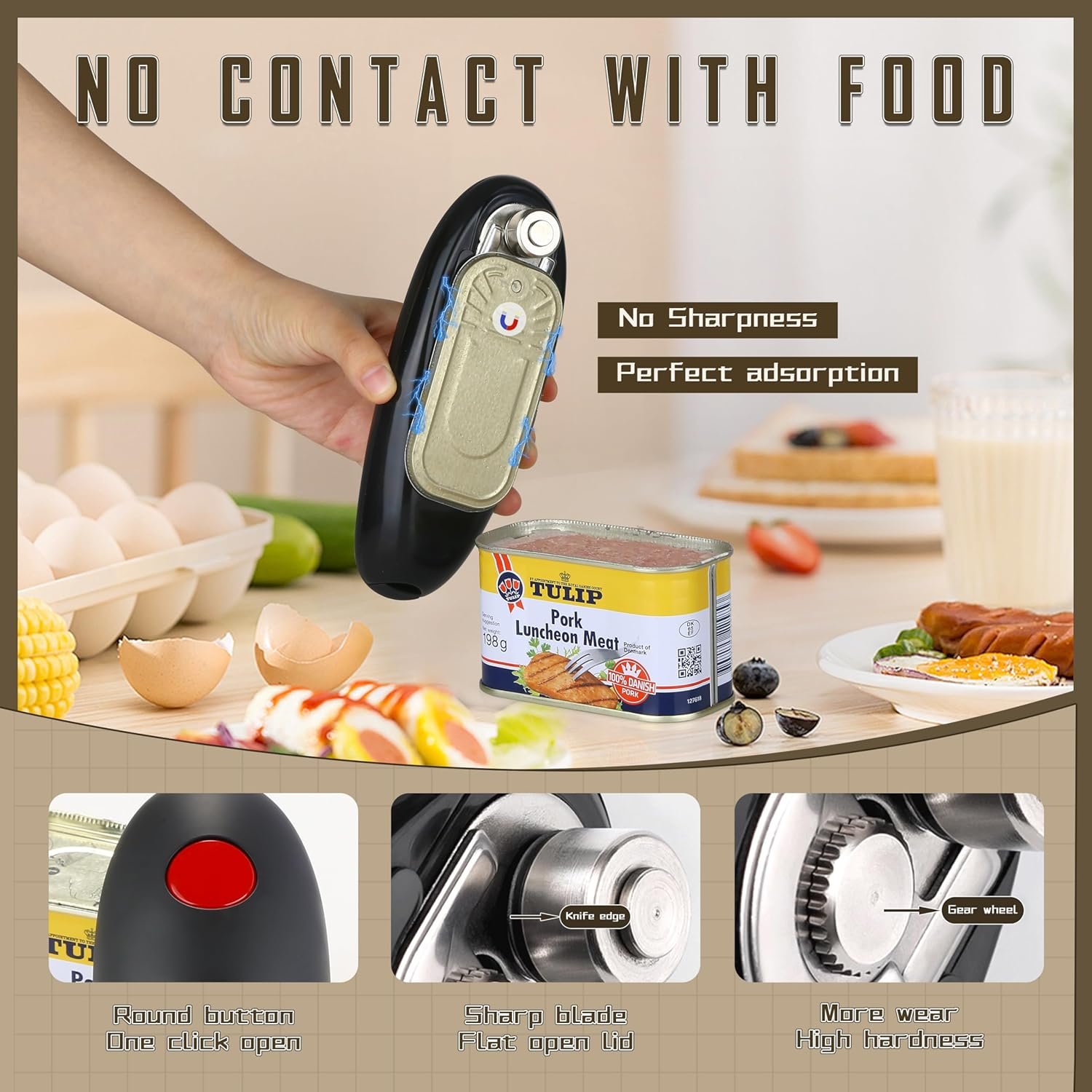 【Can Opener Smooth Edge】electric can opener made of food-grade material, The blade of the can opener electric cuts along the side of the lid without touching the food inside, leaving no sharp cuts and high safety