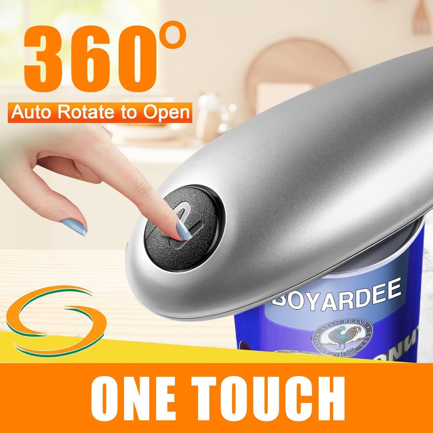 【Easy to Operate】: Suitable for virtually all types of cans, simply press the button and witness our can opener electric easily cut open cans along the side, leaving a neat, smooth edge.