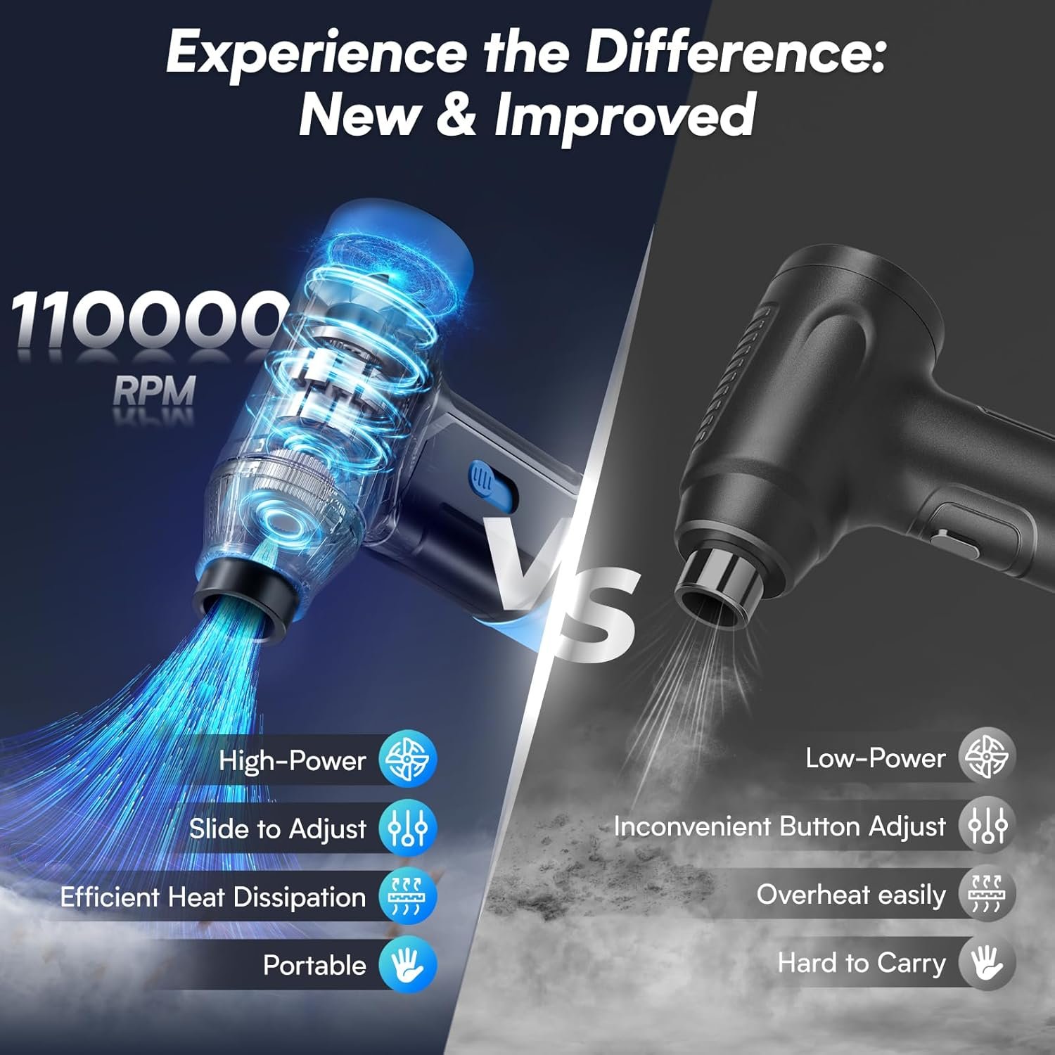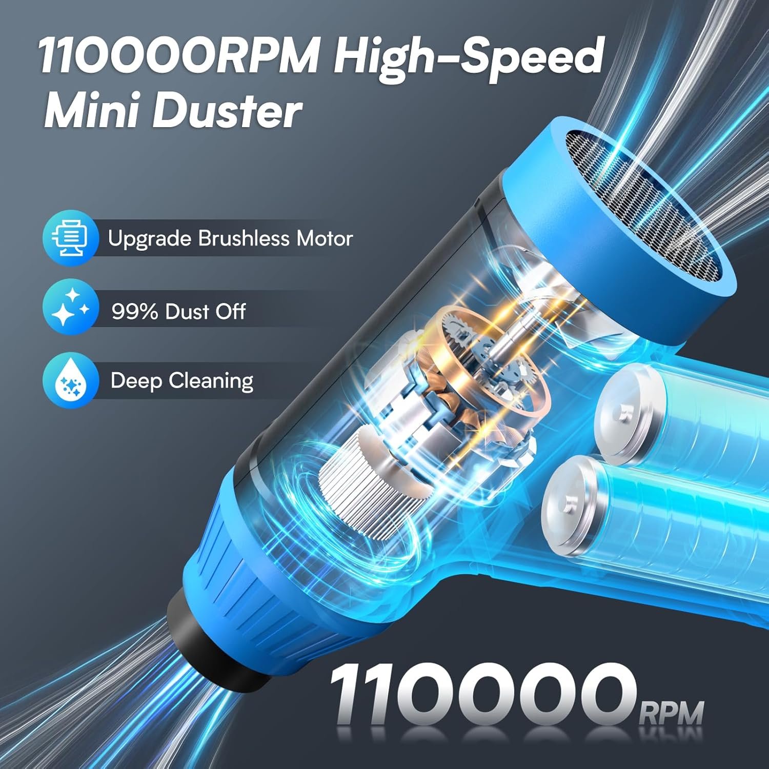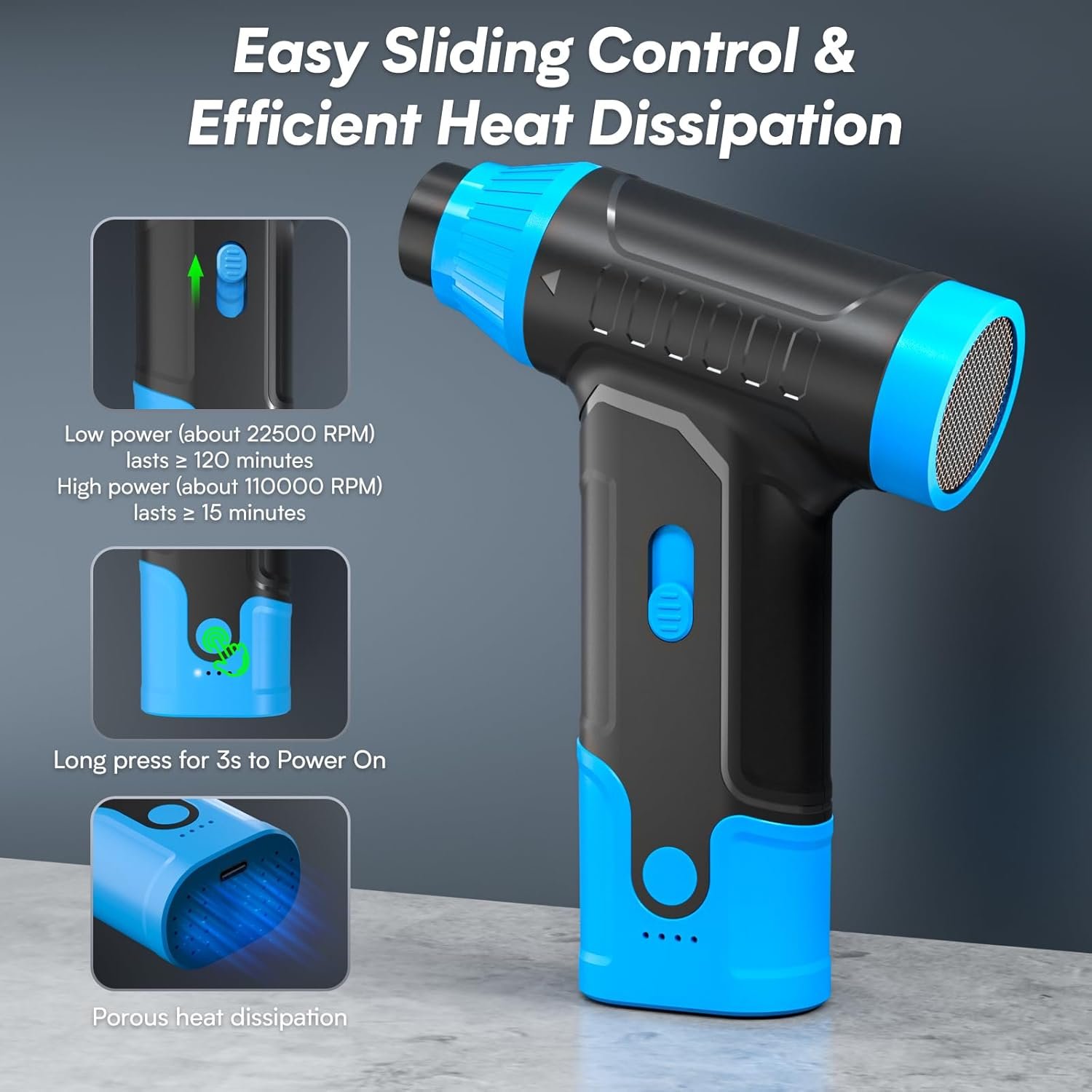 π¬π¨πΊπ π»πΆ πΌπΊπ¬ : Computer duster collectors for convenient and effective deep cleaning. This compressed air duster features robust ABS housing and an ergonomic handle, allows you cleaning easily within 2 buttons: the round one to power on or off with a 3 seconds press,and you can also press it 3 times to switch to vacuum mode; The sliding button helps you easily adjust the wind speed