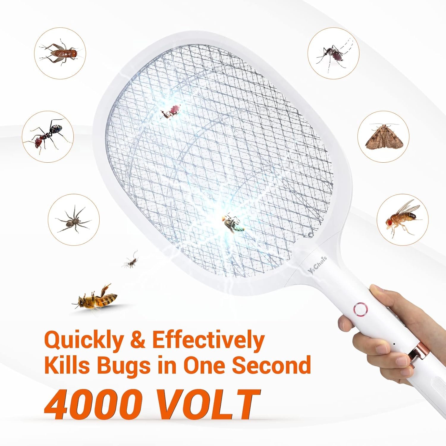 Fast and Effective: Equipped with a powerful 4000-volt grid, our electric fly zapper delivers a single shock to eliminate bugs. This mosquito swatter zapper also includes 5 UV lights that emit 360-400NM wavelengths to attract and kill mosquitoes and flies for more efficient results.oes and flies for more effective results.