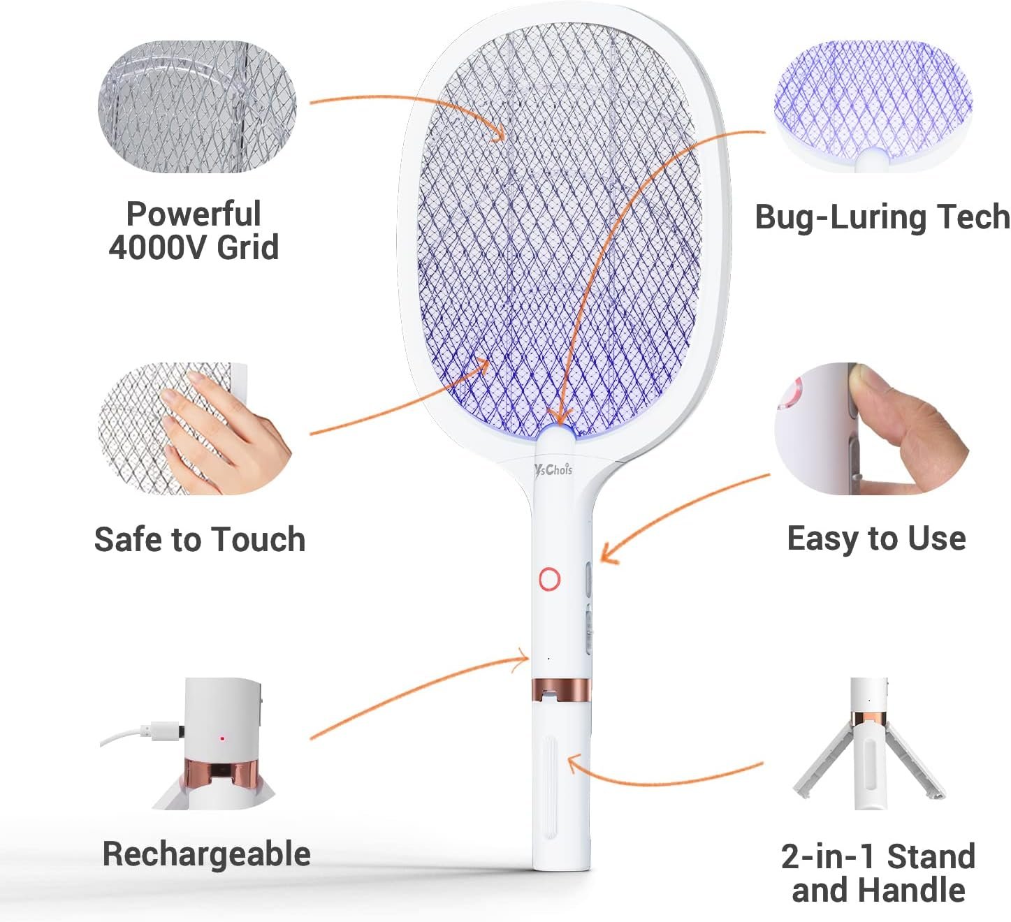 Versatile Pest Control: Beyond a fly swatter electric zapper. This electric fly swatter rechargeable racket features a built-in exclusive tripod for enhanced stability and portability.