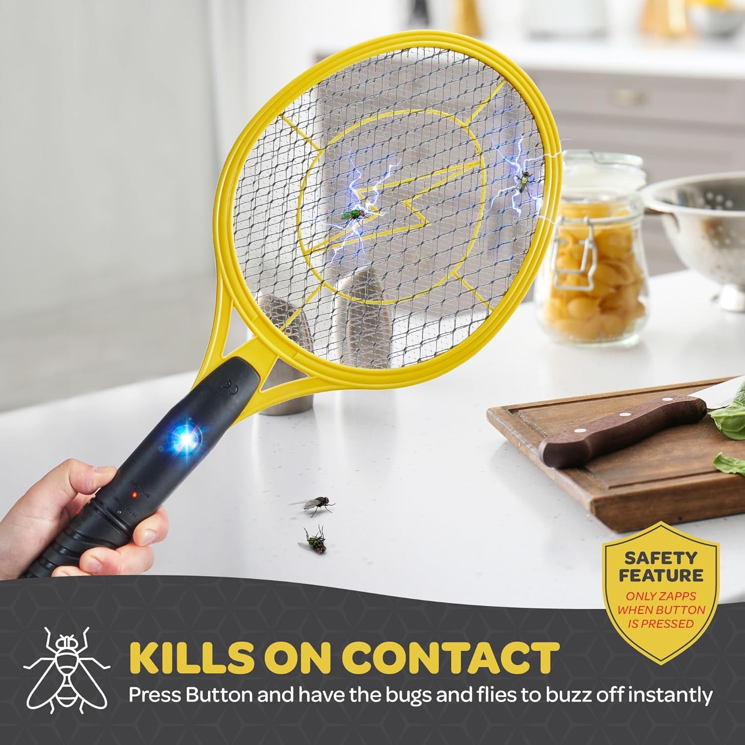 4,000-WATT ELECTRIC FLY ZAPPER: Instantly kills flies with a satisfying zap as soon as you touch them. Have fun zapping the flies with our portable electric mosquito swatter that allows you to zap anytime, anywhere.