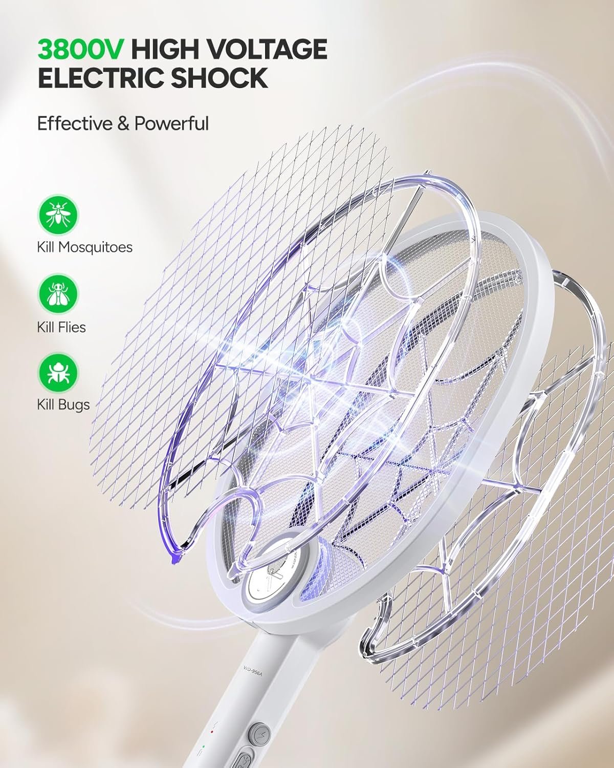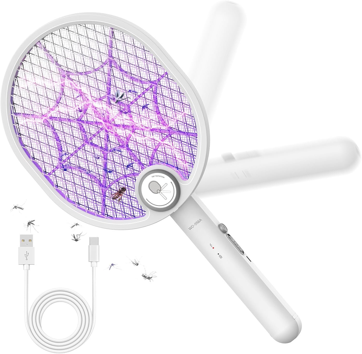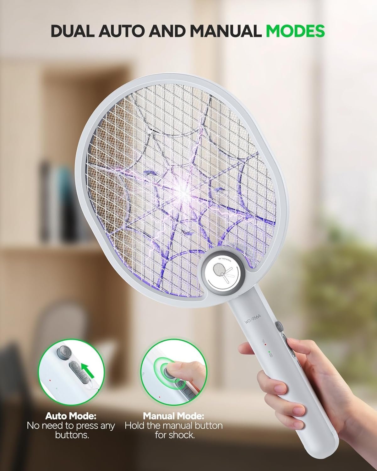 Electric Fly Swatter, Type-C Rechargeable Mosquito Swatter, Foldable, Dual Handheld and Auto Zap Mode, 3800V Powerful Instant Bug Zapper Racket, Mosquito Bat for Indoor Outdoor Camping -WD956A