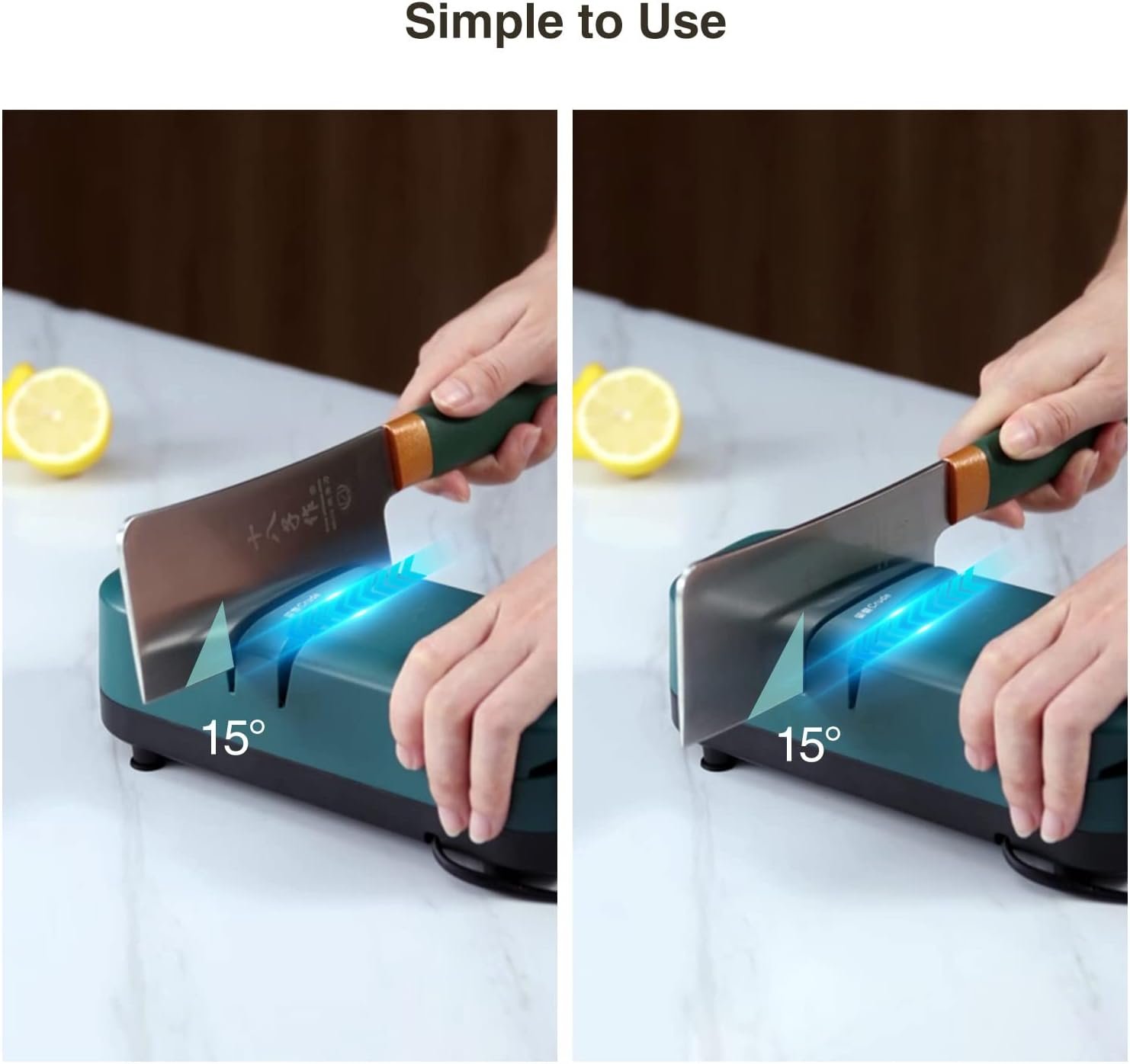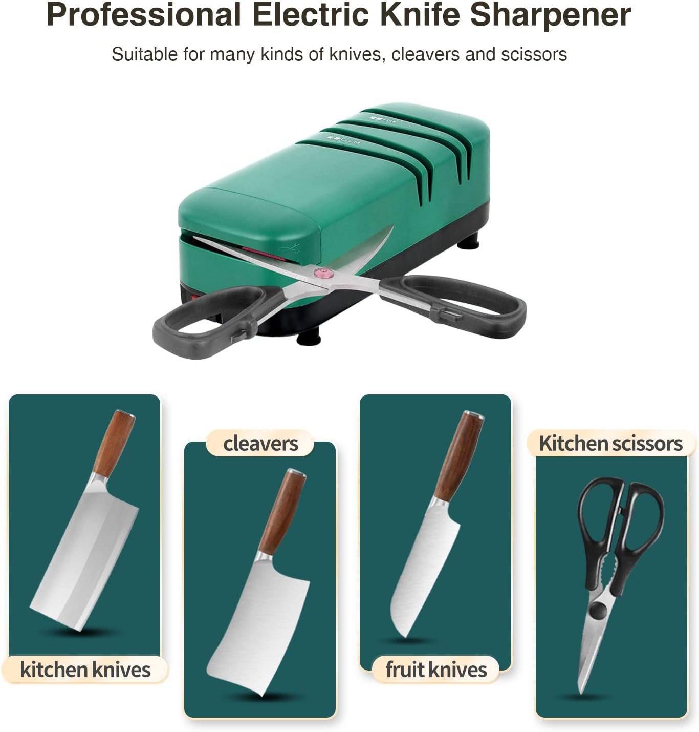 Professional Knife Sharpener: LCVXYERQ electric knives are professionally designed for family kitchens. bringing you professional results conveniently at home. Works on stainless steel kitchen knives but not ceramic or serrated.